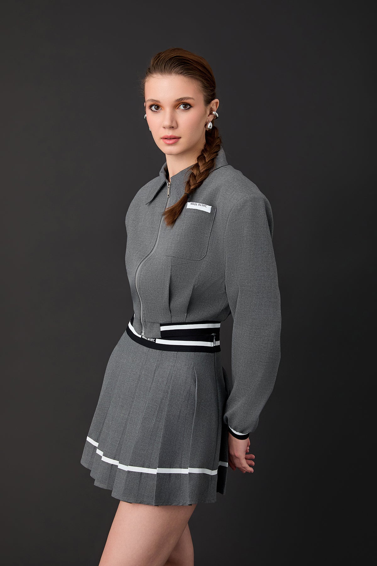Ribana Detaylı Fermuarlı Kısa Ceket Koyu Gri
