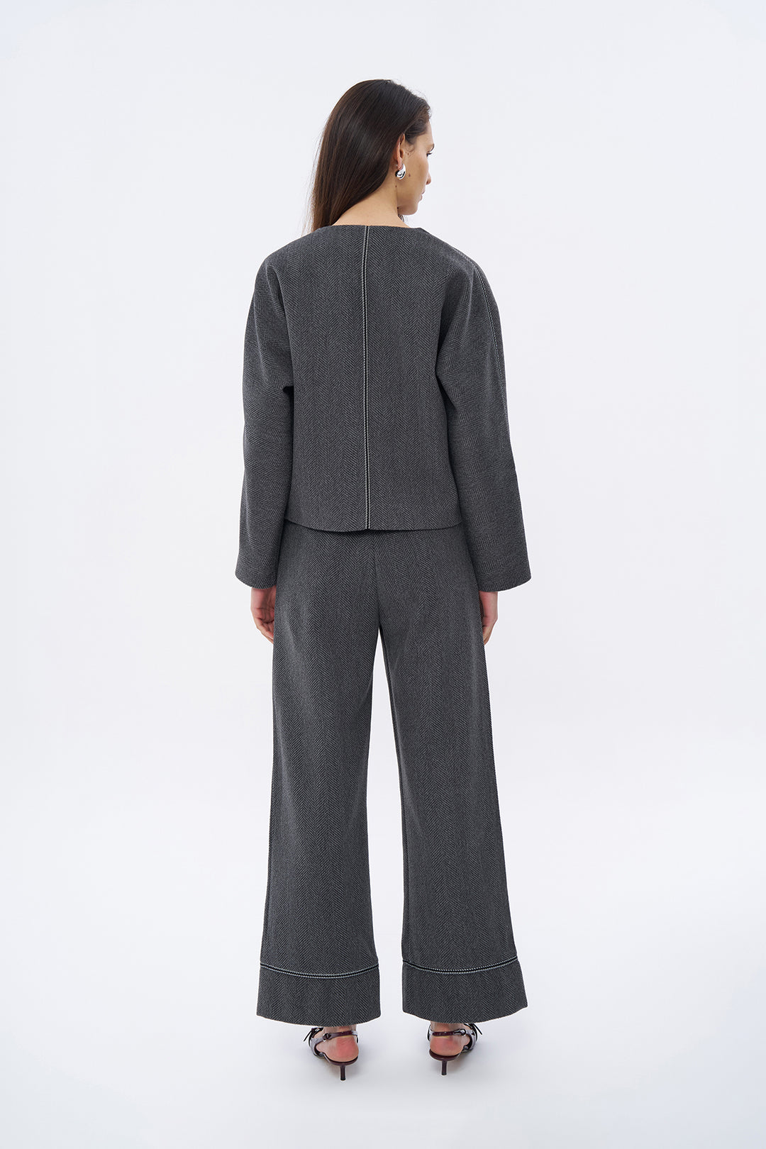 Şerit Detaylı Düğmeli Kaşe Ceket Antrasit