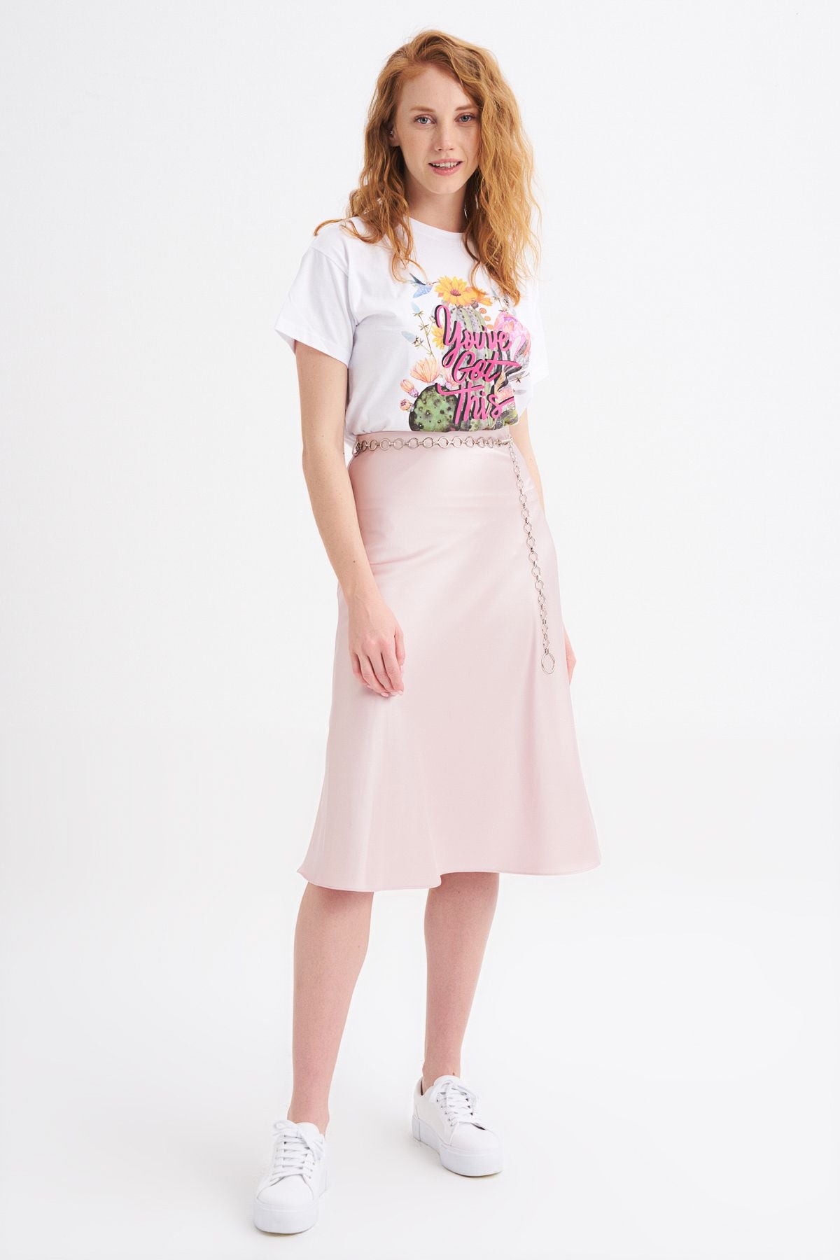 Waist Chain Midi Skirt Powder