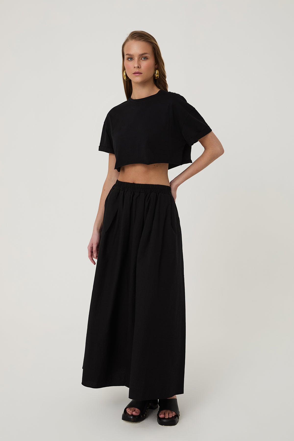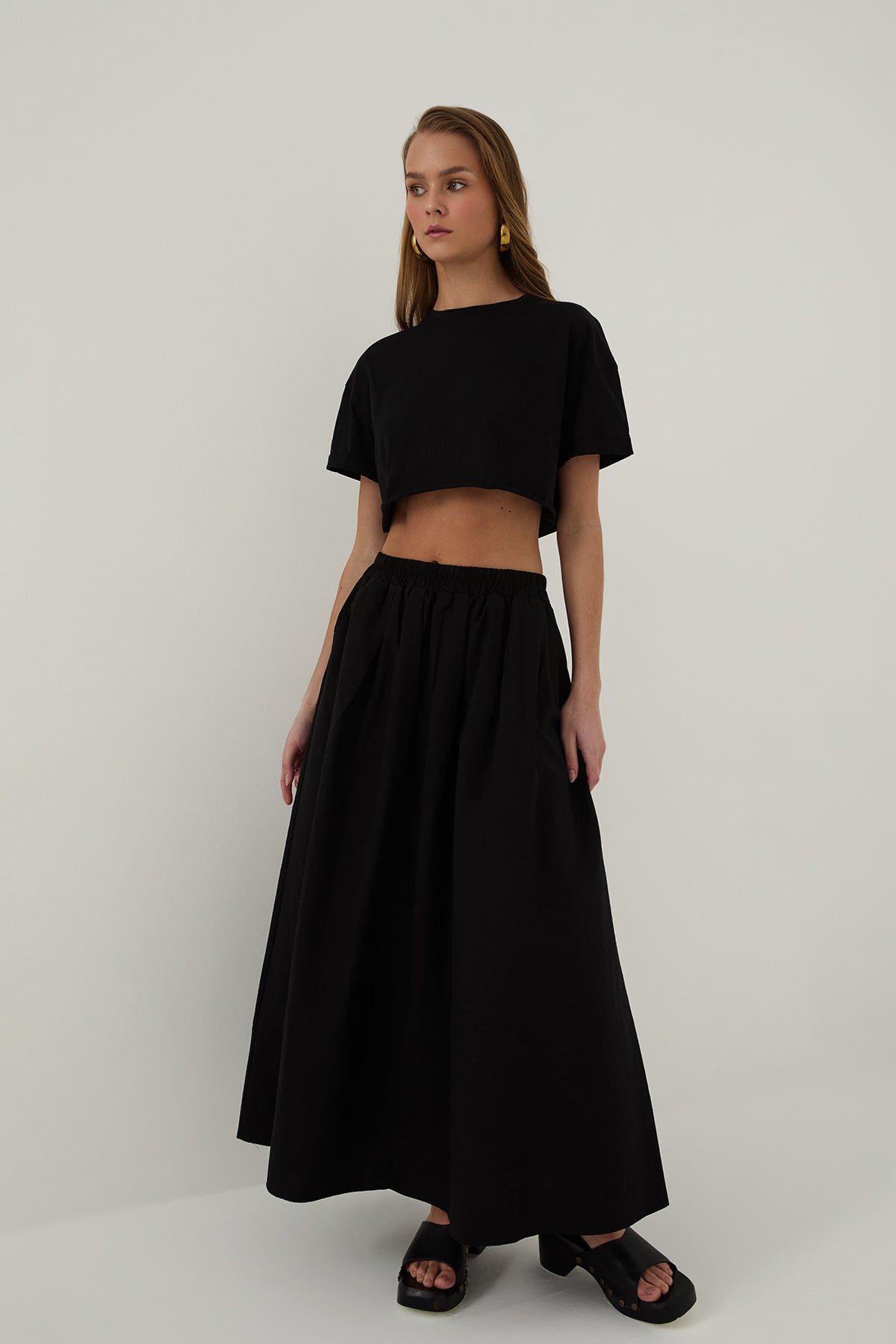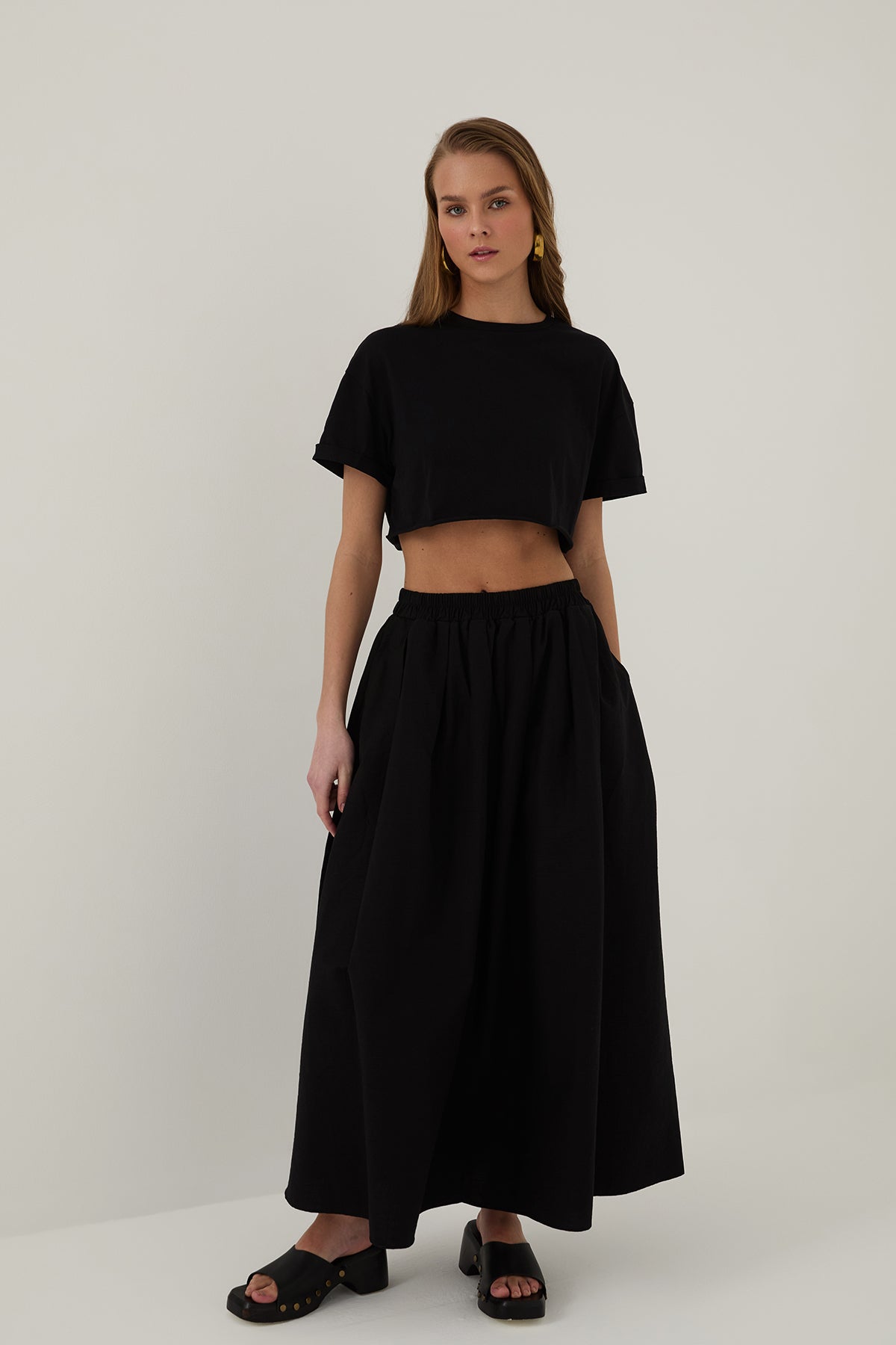 Cep Detaylı Volümlü Etek Siyah