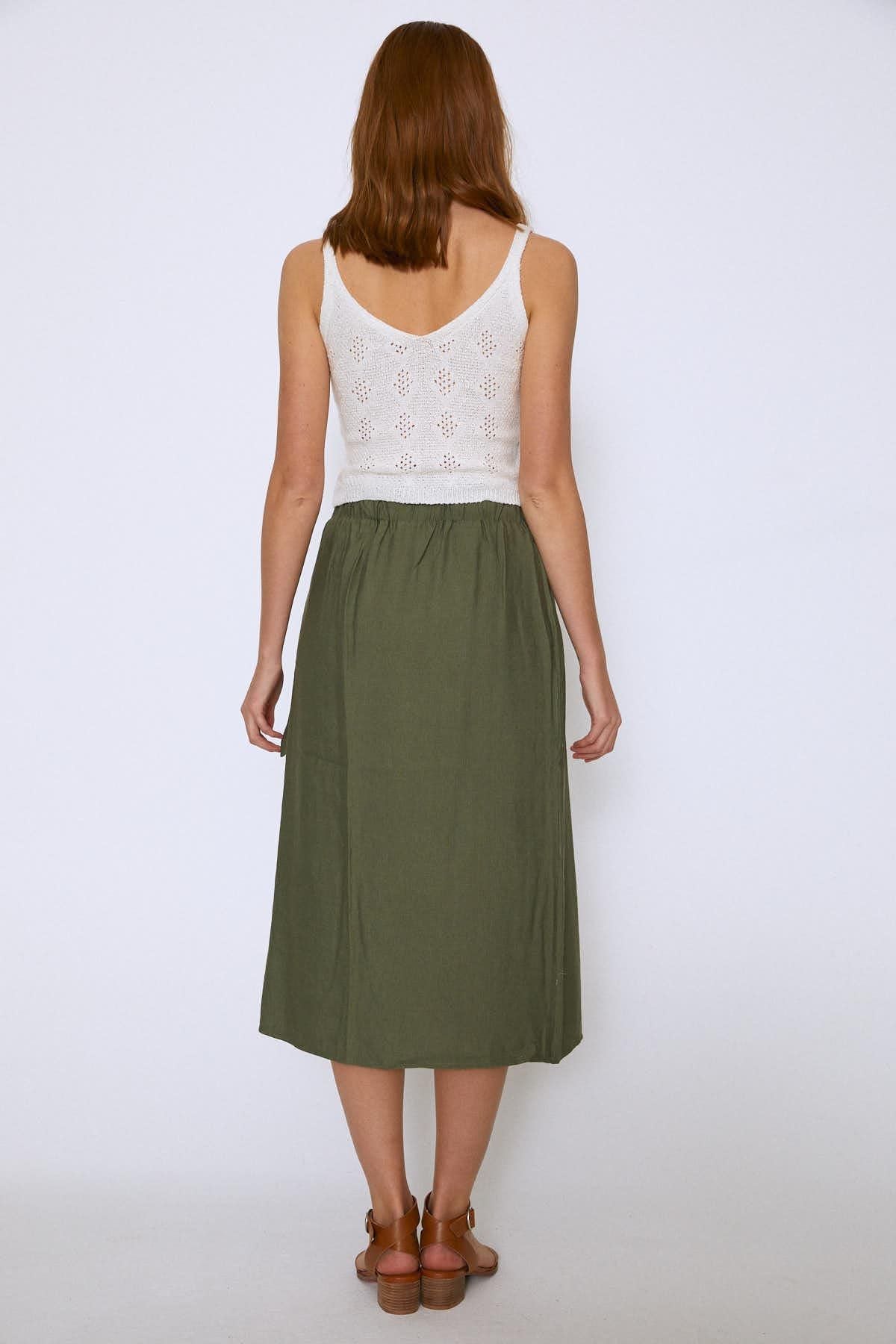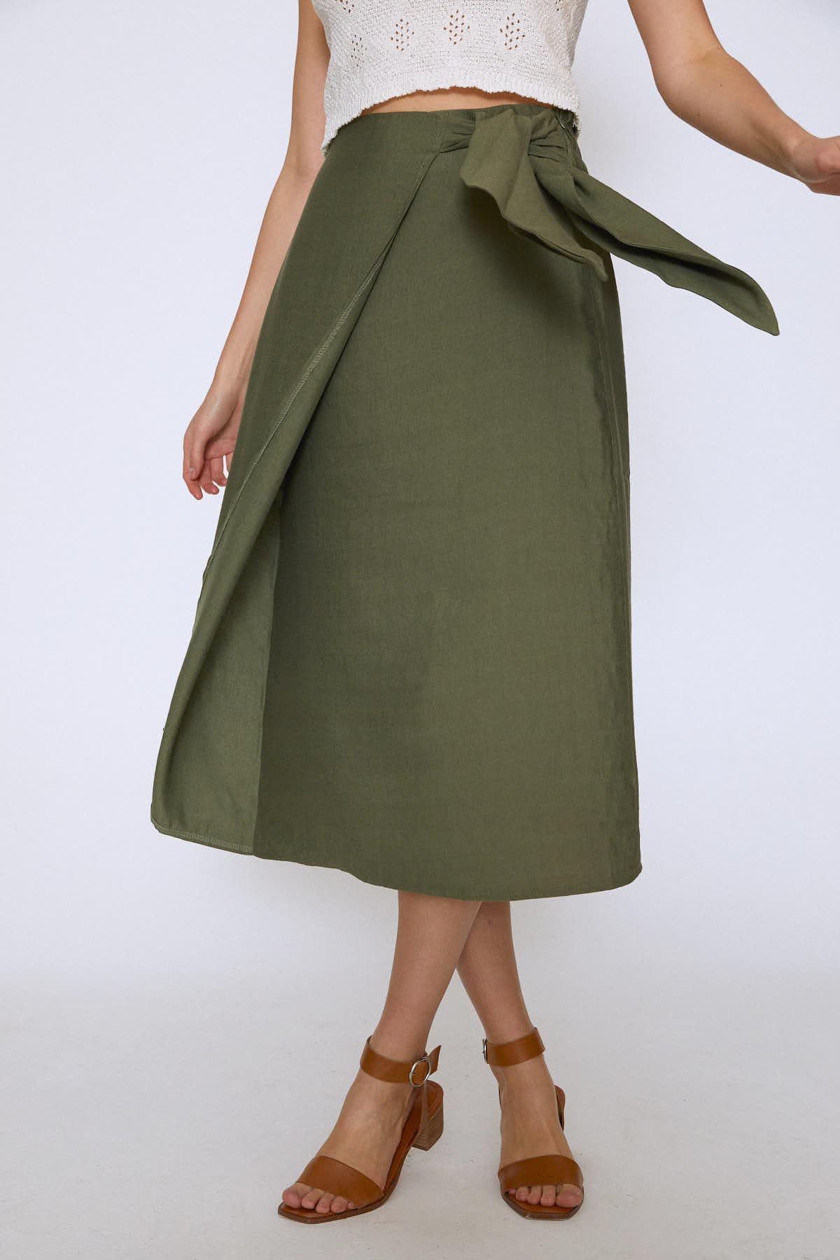 Side Tie Midi Skirt Khaki