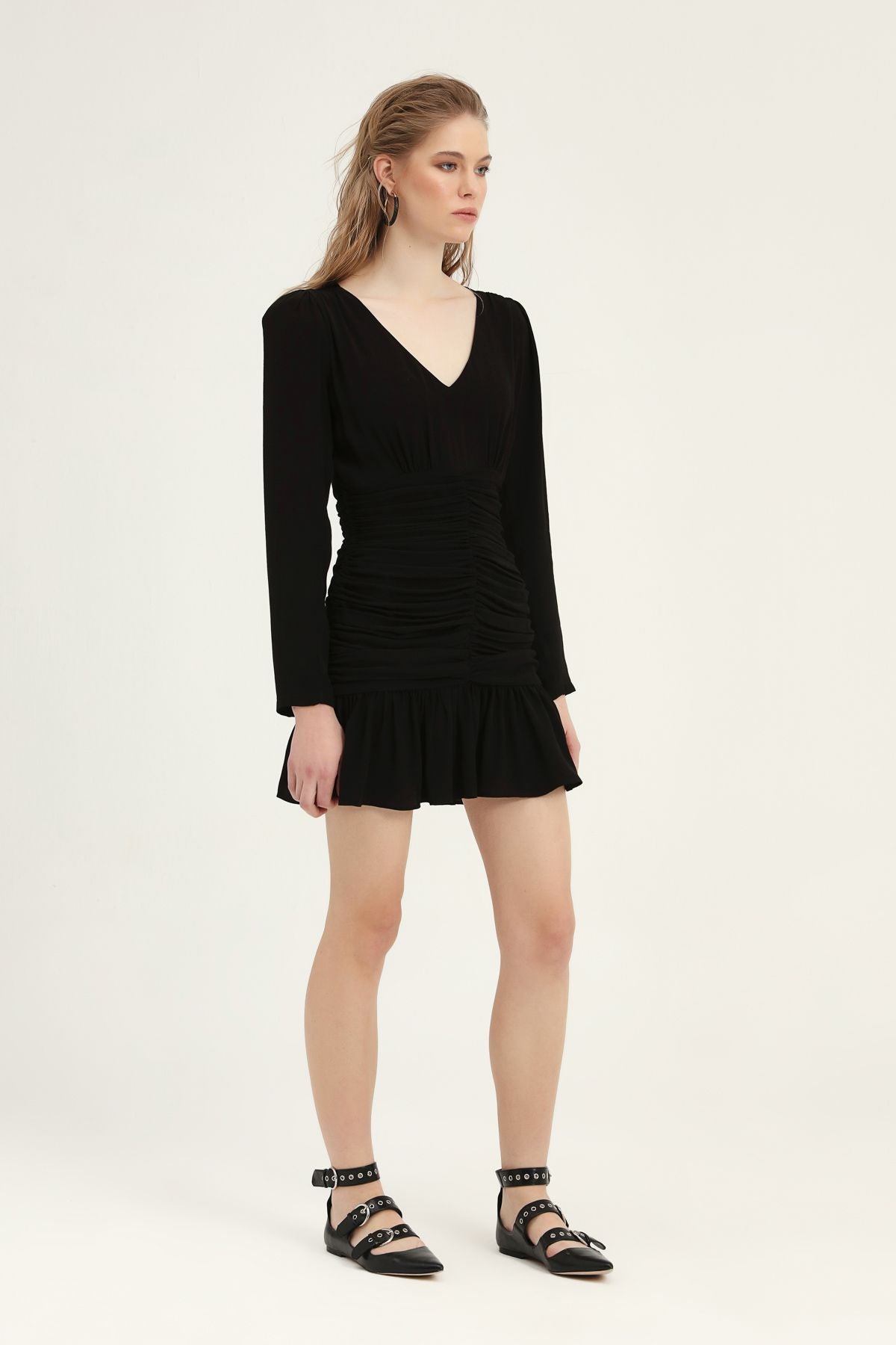 We want to help you find the crucial piece for you to achieve effortless elegance in one step! We added the balloon sleeve detail that will make your shoulders look more voluminous to the gipped mini-length dress model, which is a candidate to be the top piece of your wardrobe! Let the balloon sleeve mini dress, which will be the savior of both night parties and romantic meetings, wrap you around you... 😊