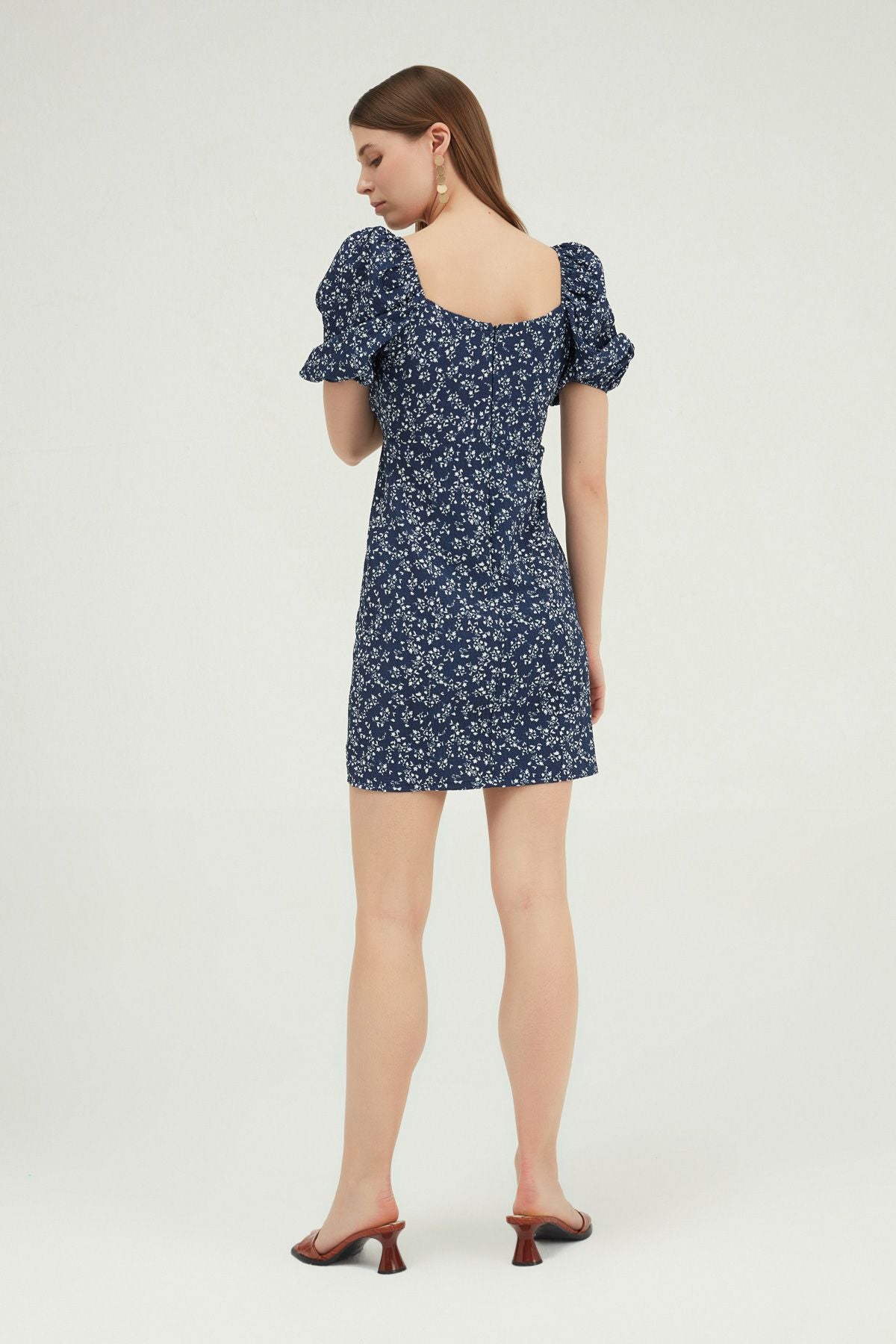 Patterned Watermelon Sleeve Mini Dress Indigo