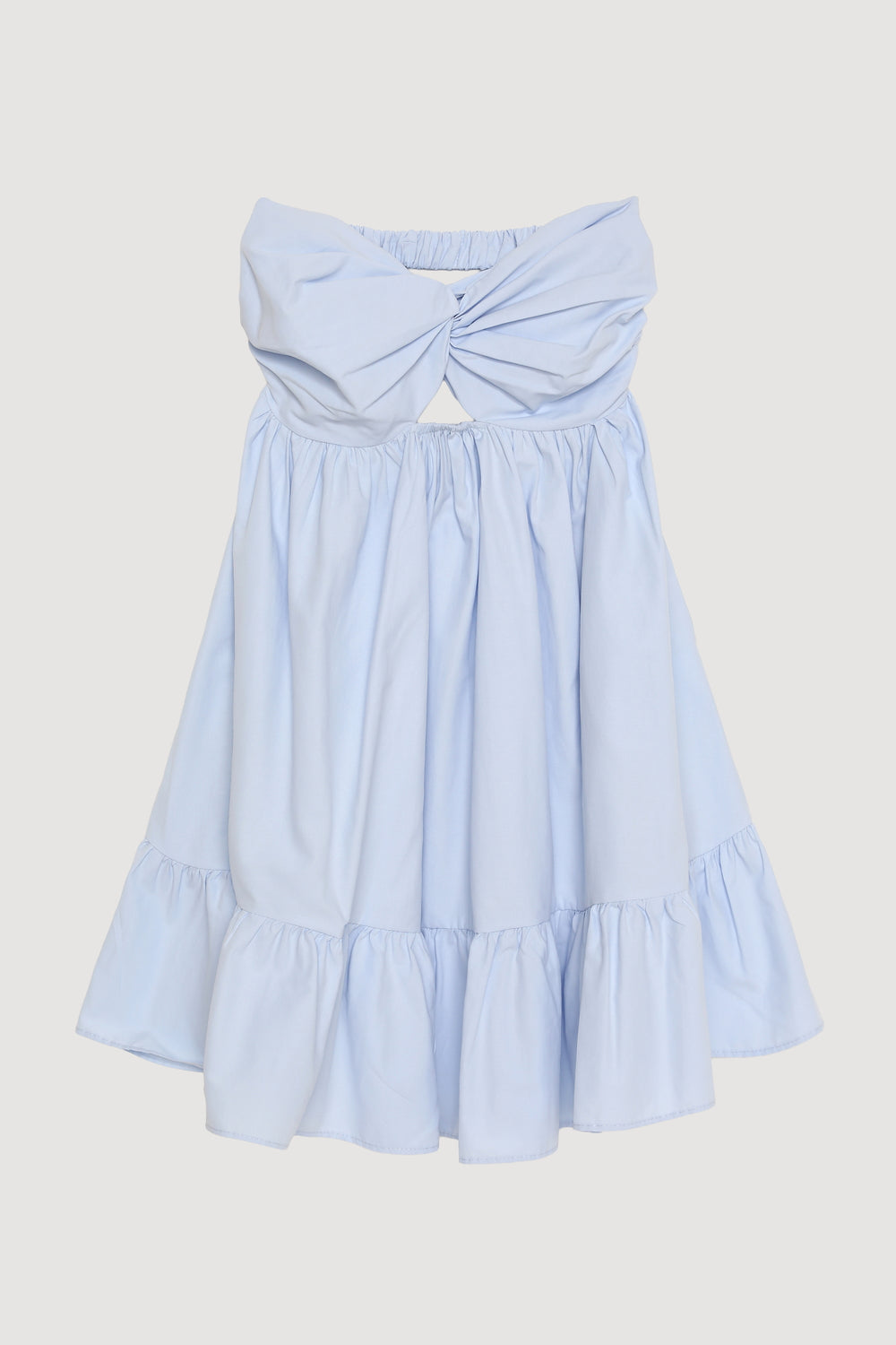 Önü Düğüm Detaylı Sırt Dekolteli Straplez Mini Elbise Mavi