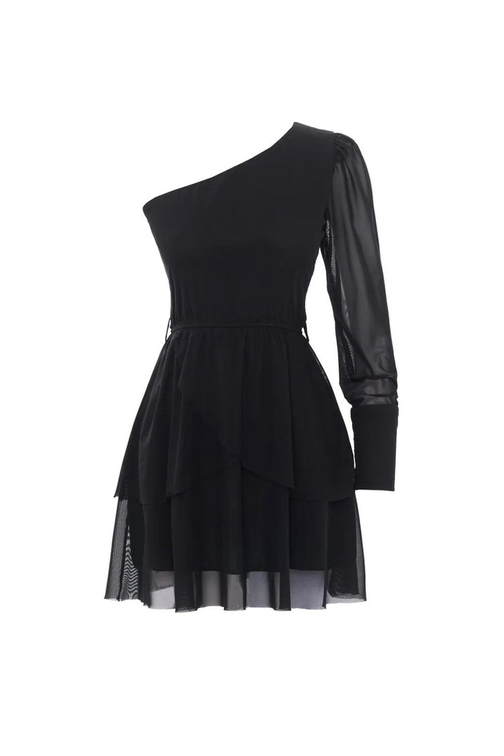 Tie Detailed One-Shoulder Mini Dress Black