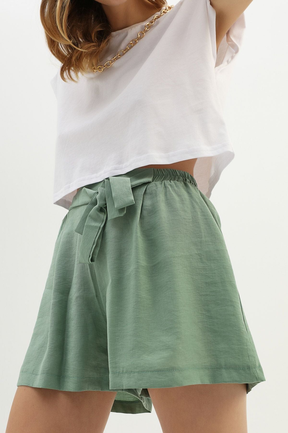 Tie Detailed Shorts Dark Mint