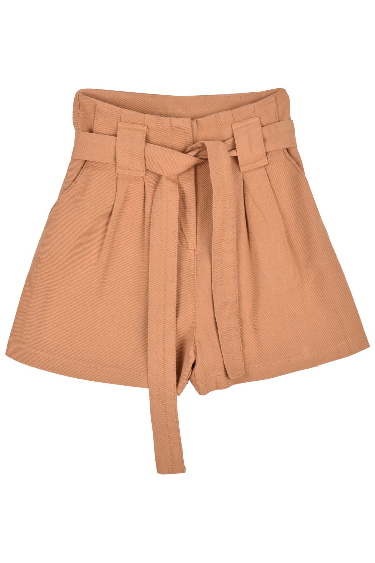 Belt Detailed Gabardine Mini Shorts Light Brown