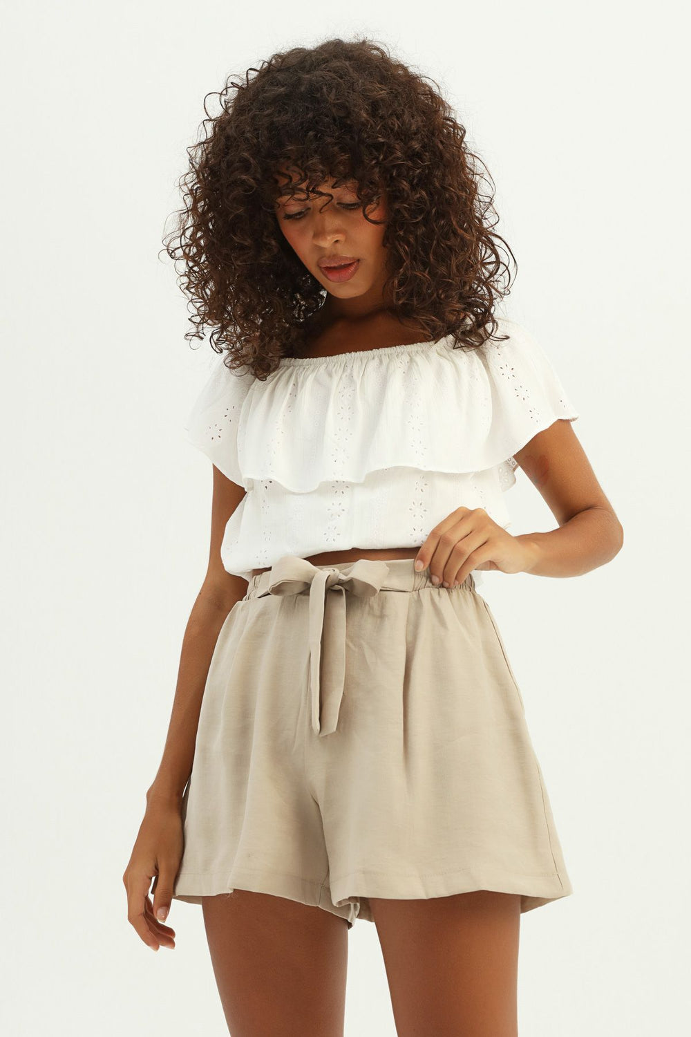 Belt Detailed Laced Shorts Ecru