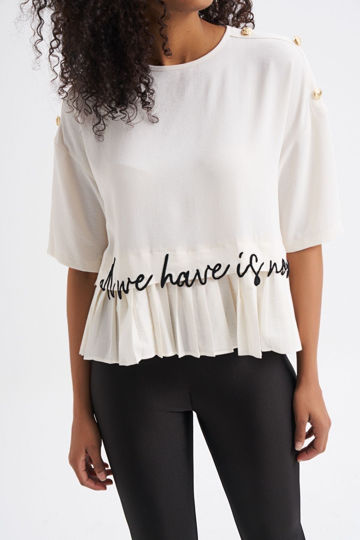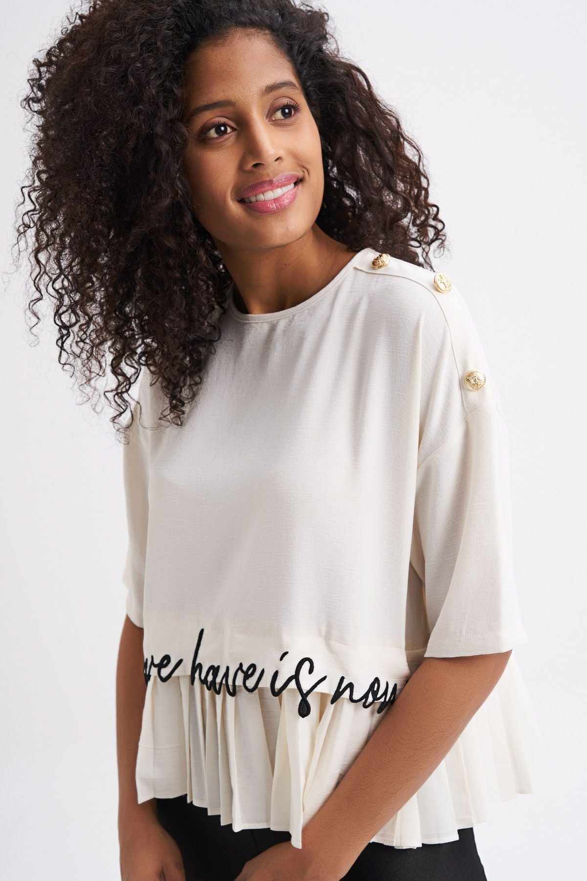 The frilly blouse, which you can easily combine with a black leggings or slim fit trousers with its modern design blended with a bohemian air, is a candidate to be indispensable for your combinations.