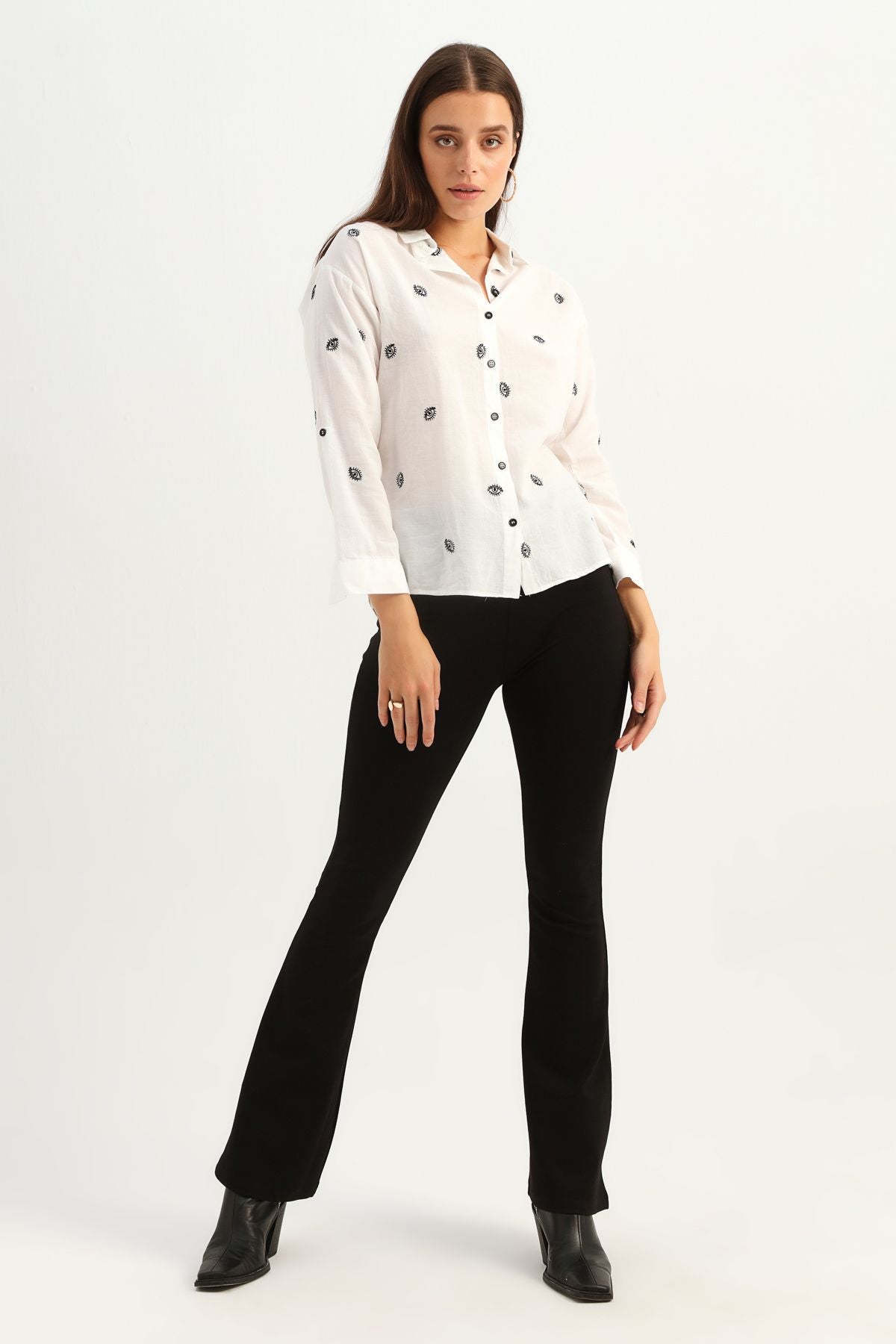 You will get used to the shirt, which will easily take its place in the most special combinations, with its patterns embroidered with eye-catching details and its magnificent cotton-linen mixed texture.