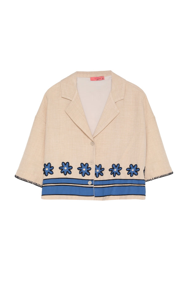 Nakış Detaylı V Yaka Gömlek Bej