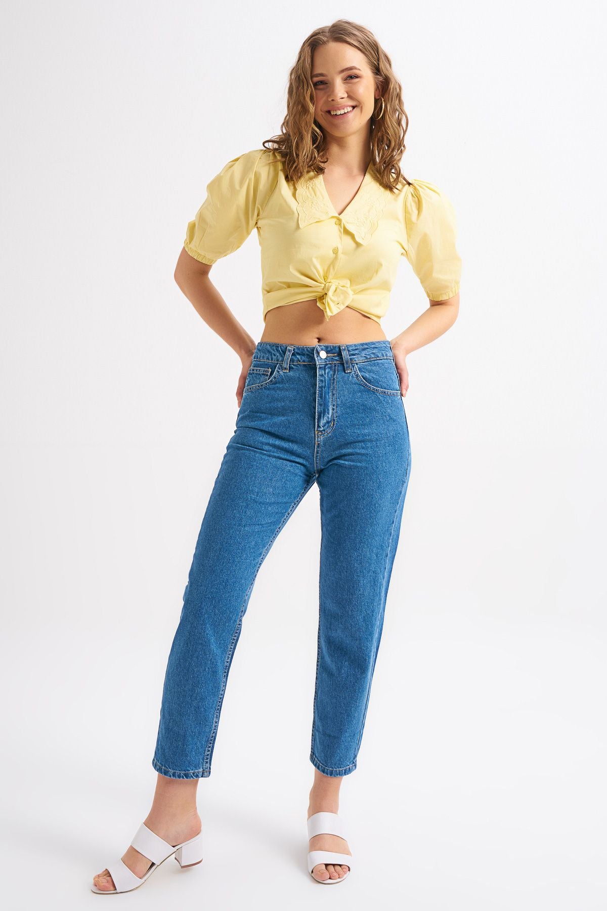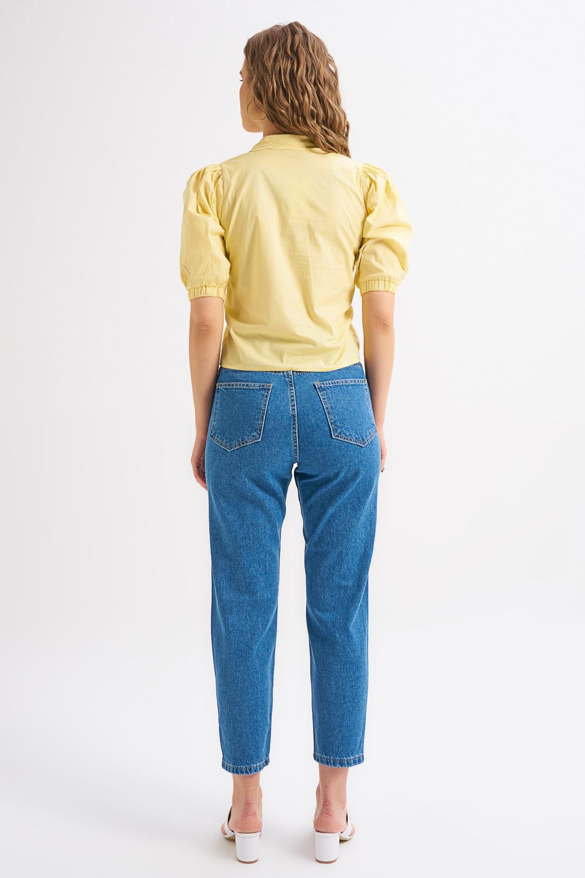 Yellow Shirt with Embroidered Collar