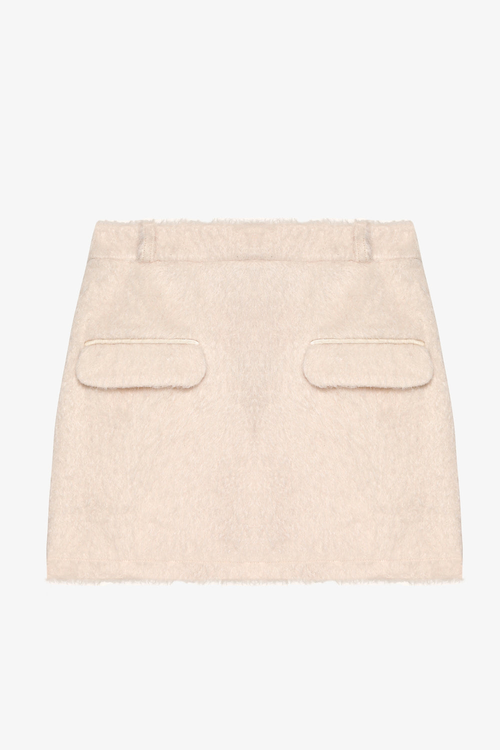 İçi astarsız, düz kesim, cep kapak detaylı, yandan fermuar kapamalı, modern görünüm sunan tüylü mini boy etek.