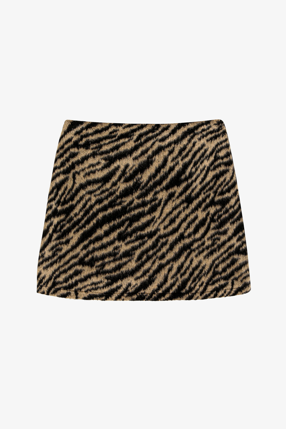 Kaplan desenli, yumuşak dokulu kumaştan, astarsız, a kesim, yüksek bel, yandan fermuar kapamalı, mini boy kaşe etek.