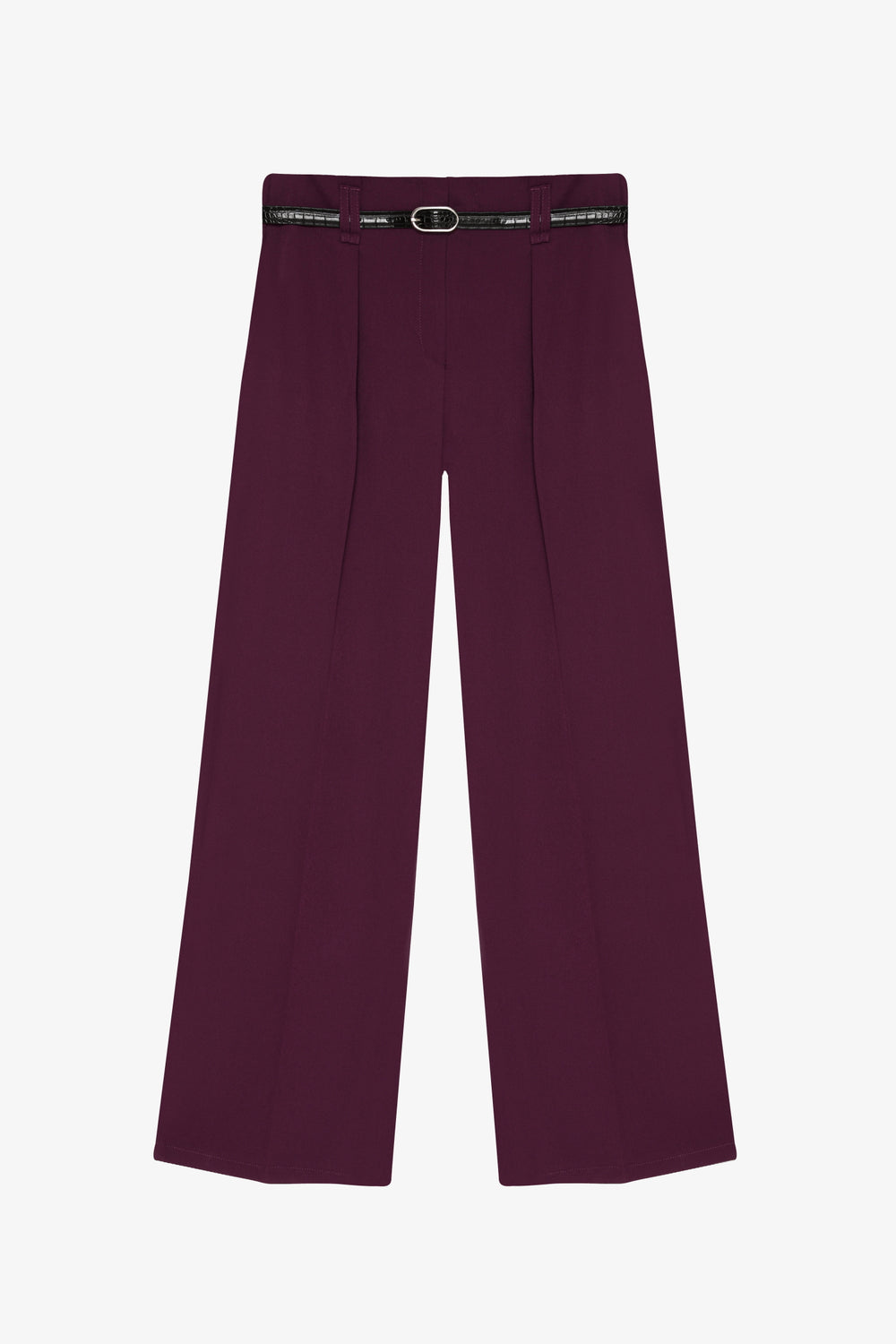 Kemer Detaylı Yüksek Bel Geniş Paça Pantolon Mürdüm