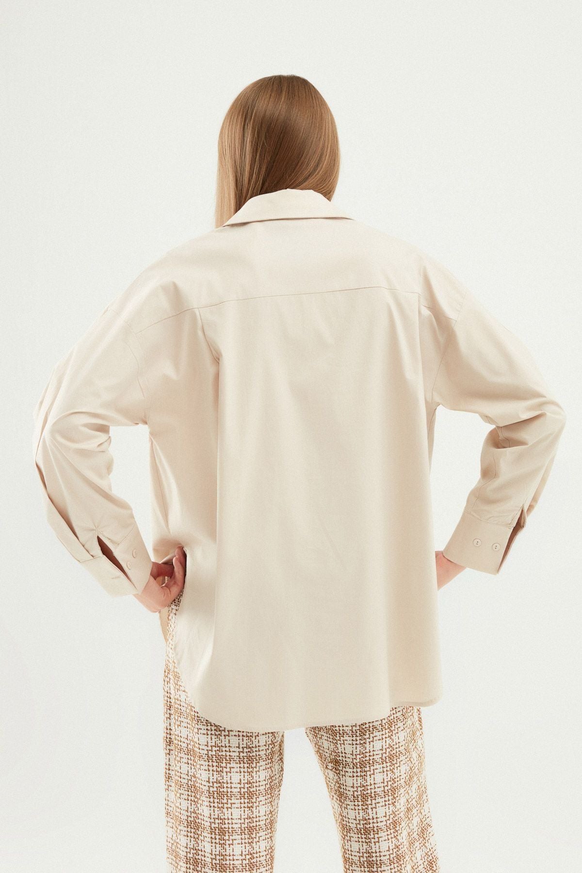 Make room in your closet for the seasonal oversize basic shirt model! It would not be an exaggeration to say that there is no combination that you cannot make with oversize shirts, the crown jewel and indispensable part of the wardrobe. You can combine your shirt, which you will wear on a roll neck, that will warm you up in cold weather, with your most comfortable trousers. You can wear halter neck shirts or bras inside oversize shirts, which have gained a considerable place in seasonal transitions; You can complete your combination with palazzo pants. You can express your style by combining an oversize shirt, which offers unlimited combination options, with mini skirts and boots.
