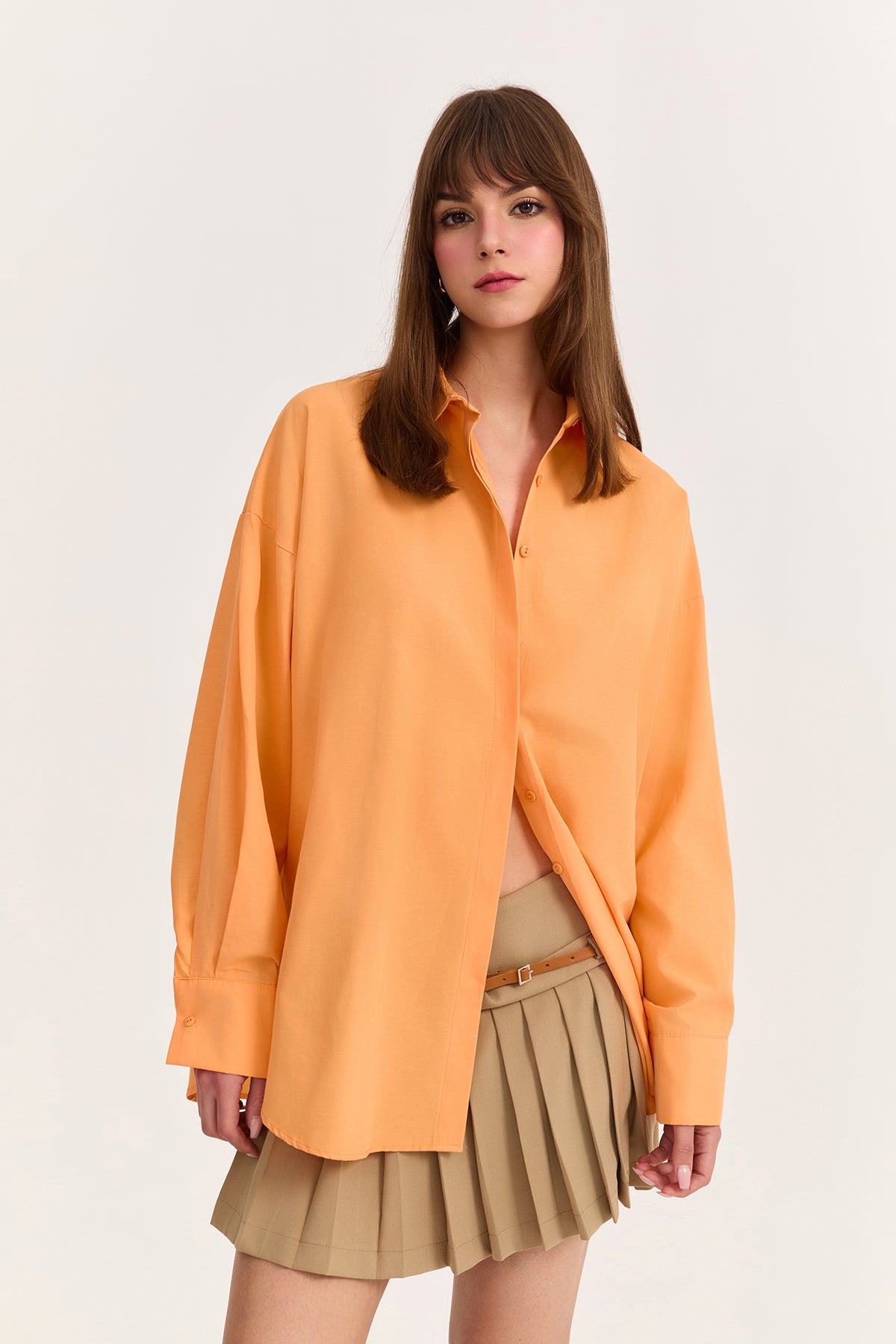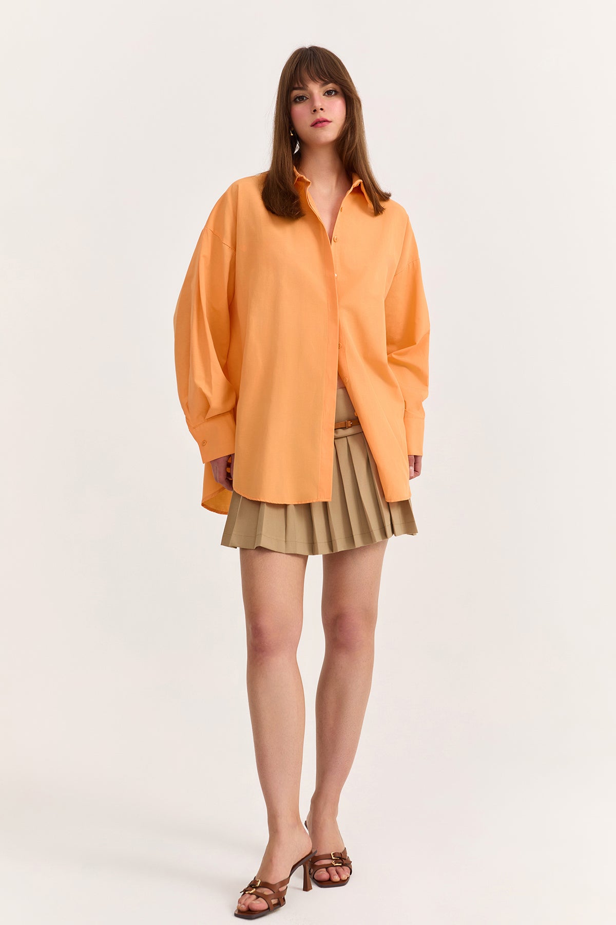 Oversİze gömlek modelİ, asİmetrİk kesİm ve dökümlü tasarımı İle rahatlığı ve modern görünümü bİr arada sunuyor. Pamuk İçerİklİ oversİze gömlek modelİ, gardıropların anahtar parçası basİc tİşörtler gİbİ çok yönlü kullanım İmkanı sunuyor.