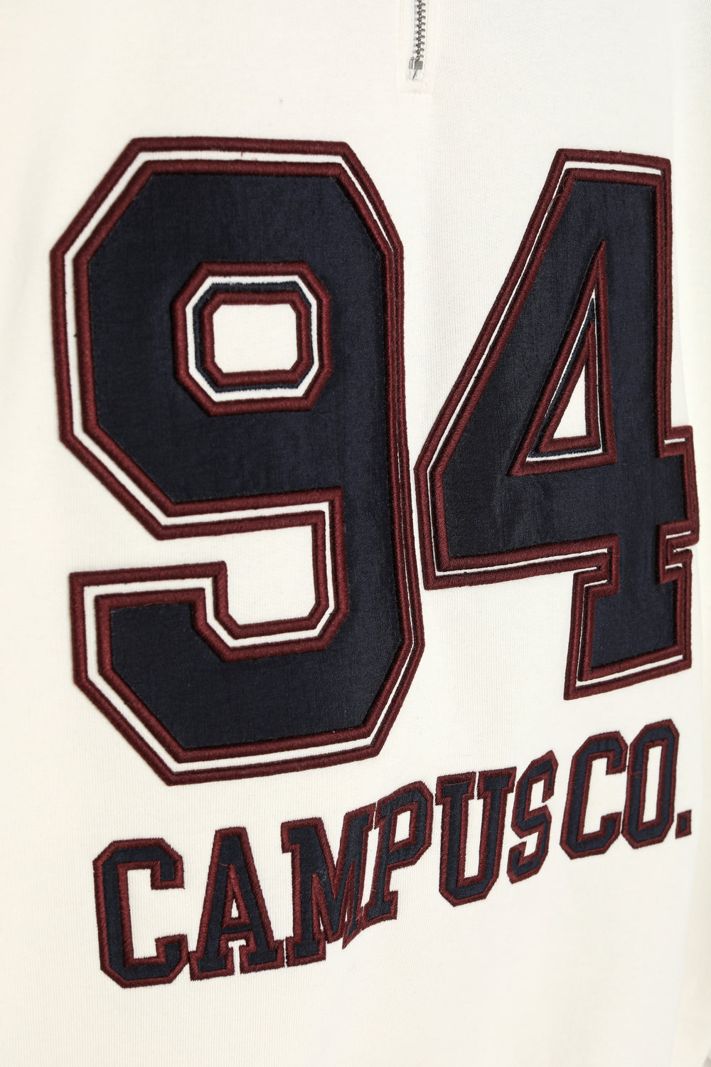 Dik Yaka Fermuarlı Renk Bloklu Oversize Sweatshirt Ekru