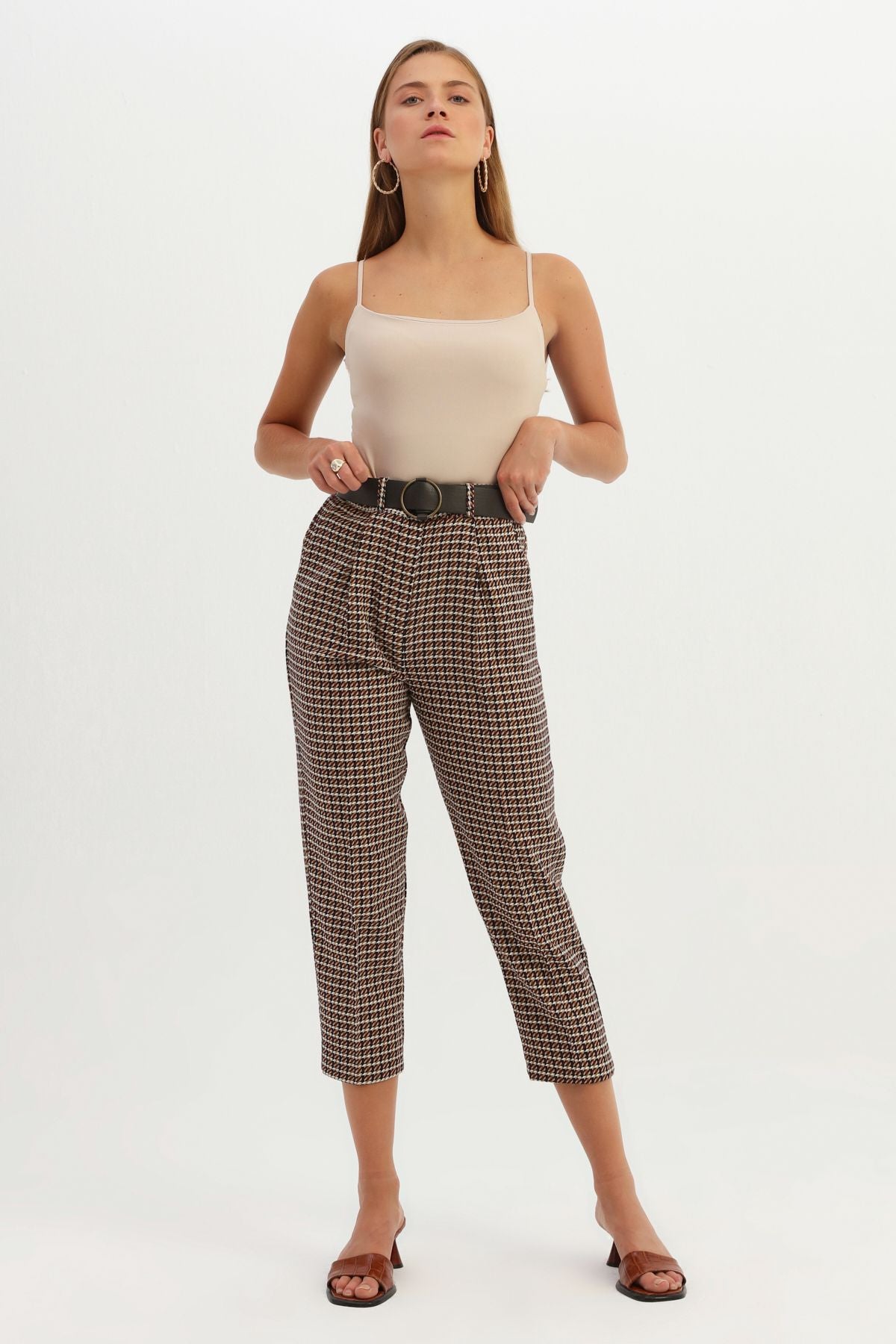 Striped Belted Trousers Brown