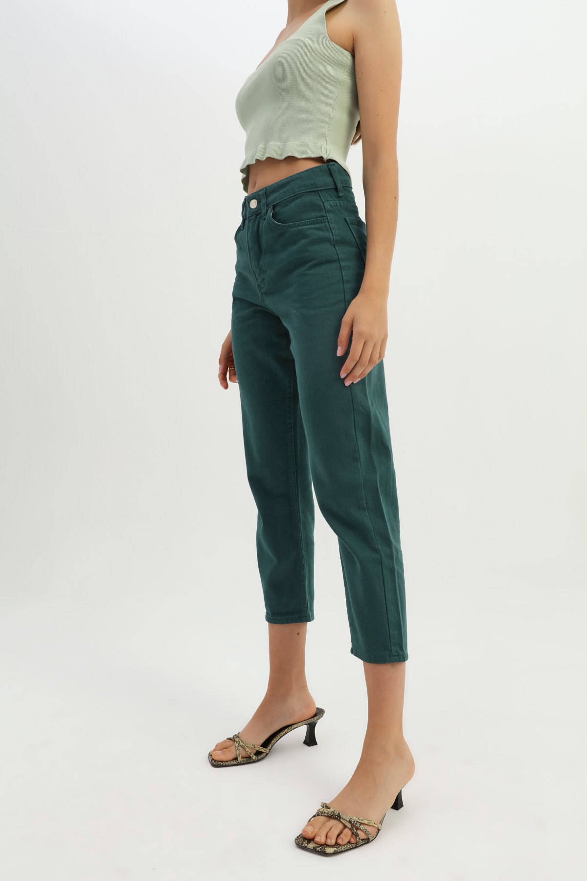 Gabardine Mom Jean Dark Green