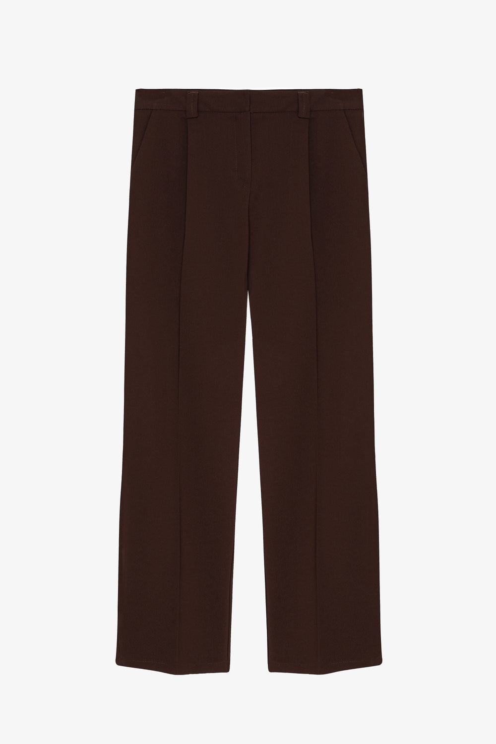 Pile Detaylı Normal Bel Havuç Pantolon Kahverengi
