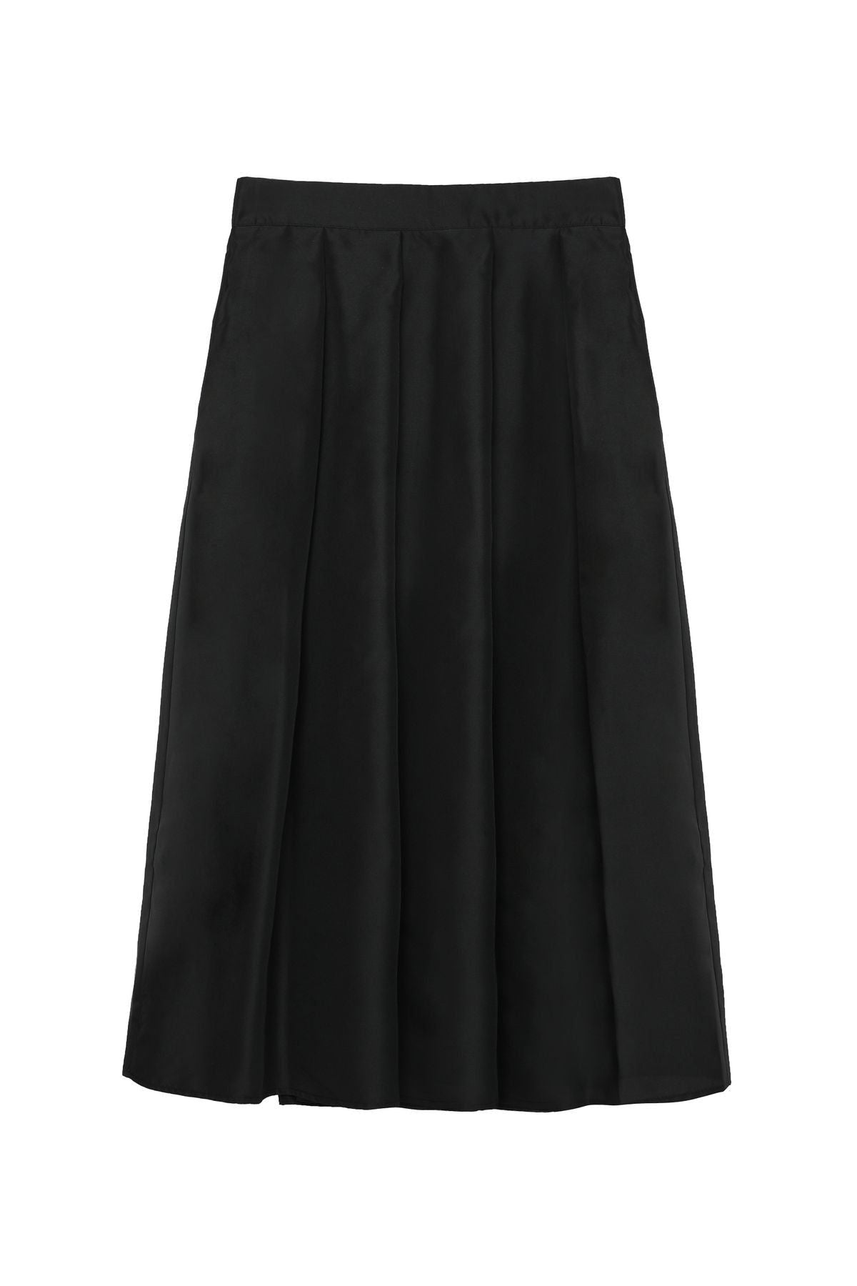 High waist, thick pleated detail, voluminous midi skirt with concealed side zip fastening.