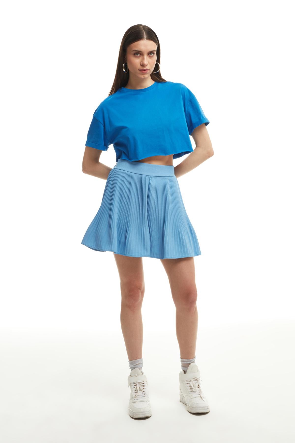 The mini skirt, designed by taking advantage of the dynamic effect of the pleat, provides a simple yet dazzling look. You can get a great stance by combining a mini skirt with short boots or high heels.