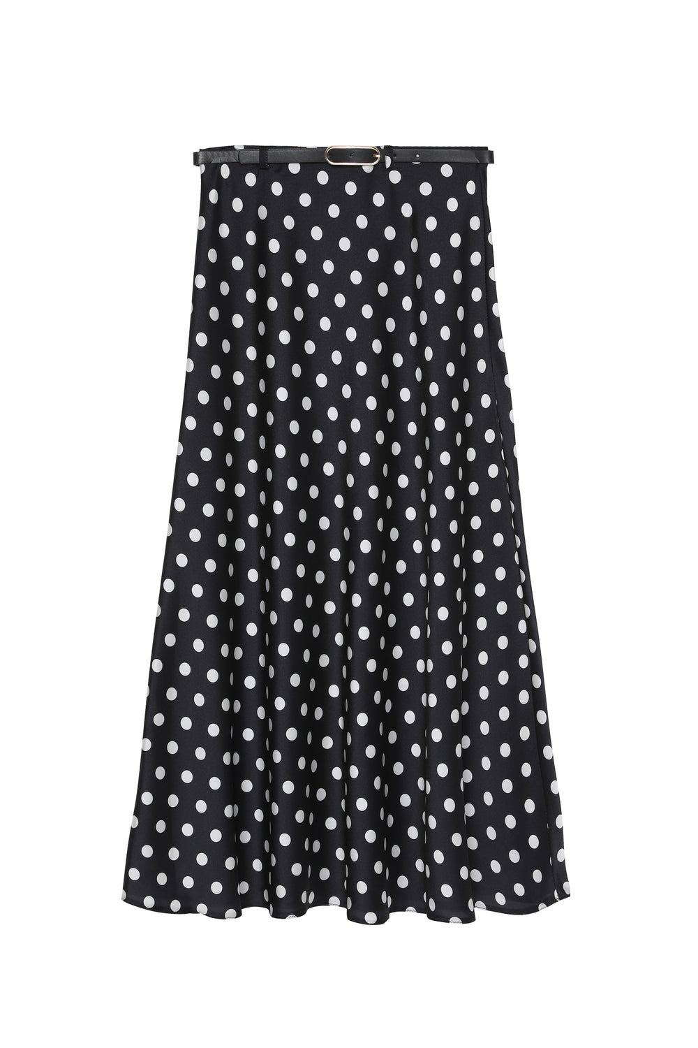 Belted Waist Polka Dot Satin Skirt Black