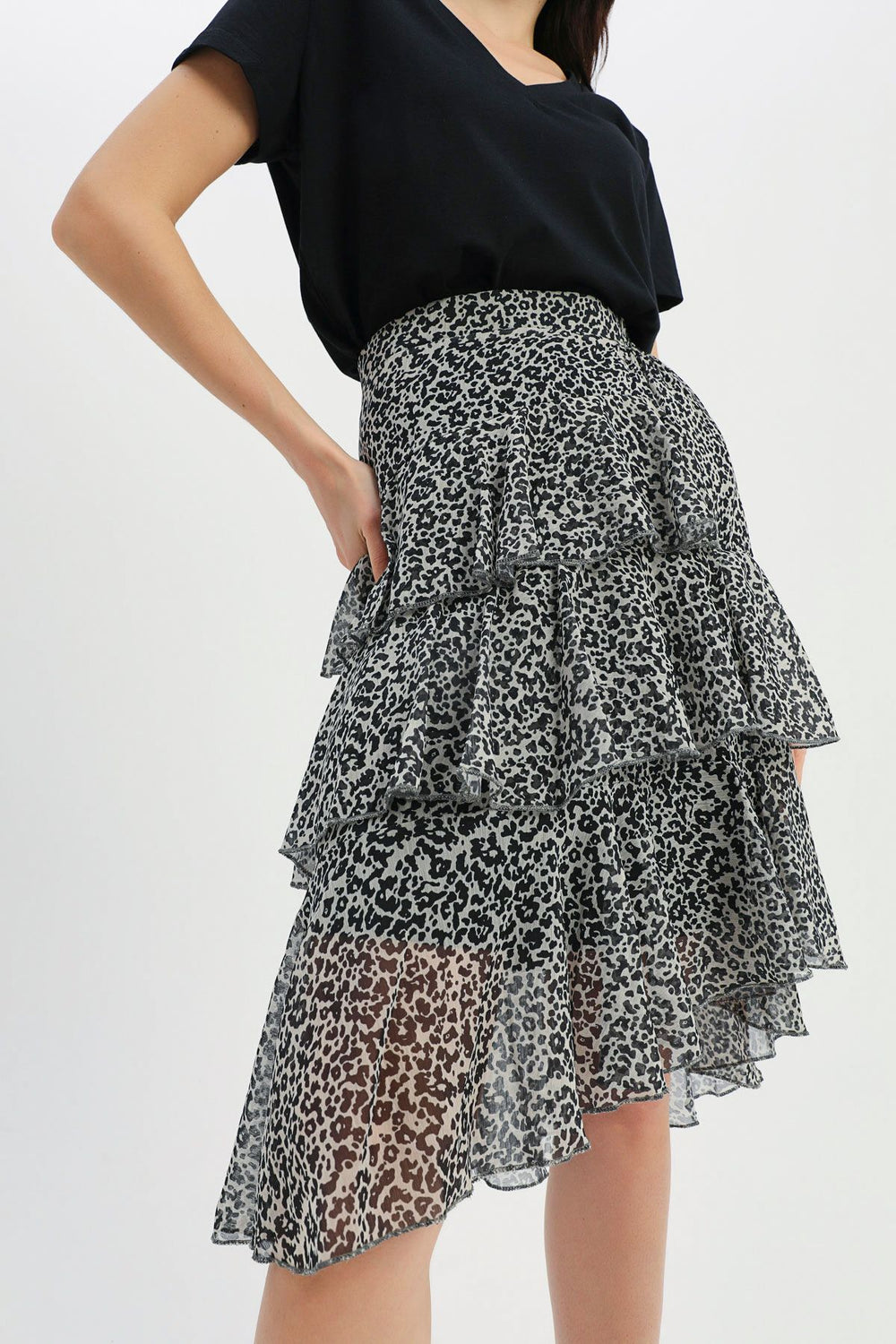 Leopard Pattern Frilly Skirt Beige