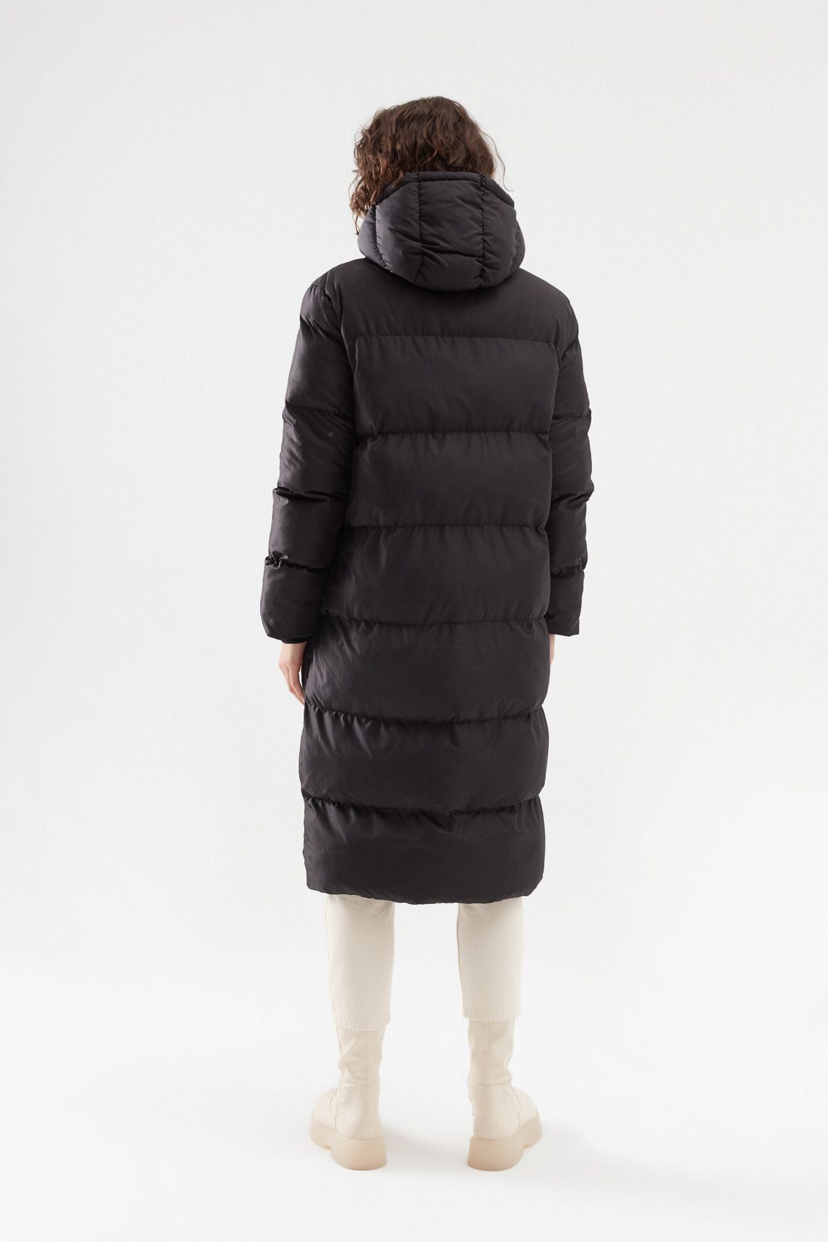 Hooded Long Inflatable Coat Black