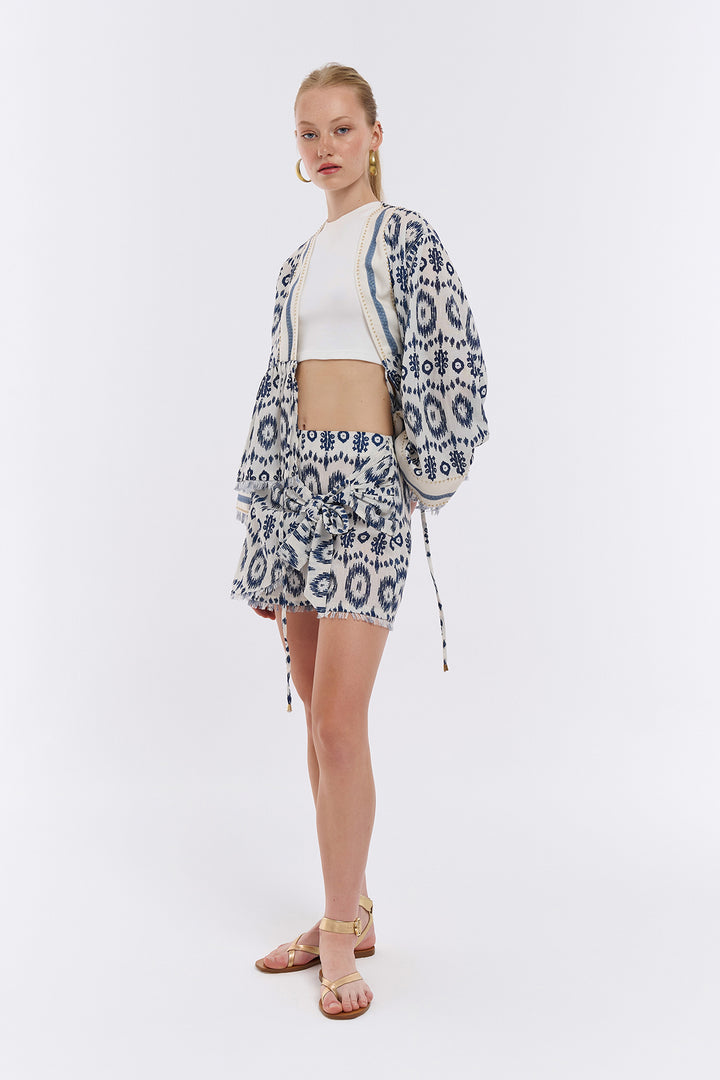 Bağlama Detaylı Desenli Şort Etek Naturel