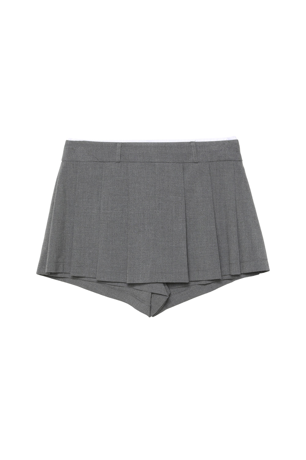 İçi şortlu, kalın pilise detaylı, boxer bel, yandan gizli fermuarlı, kısa şort etek.