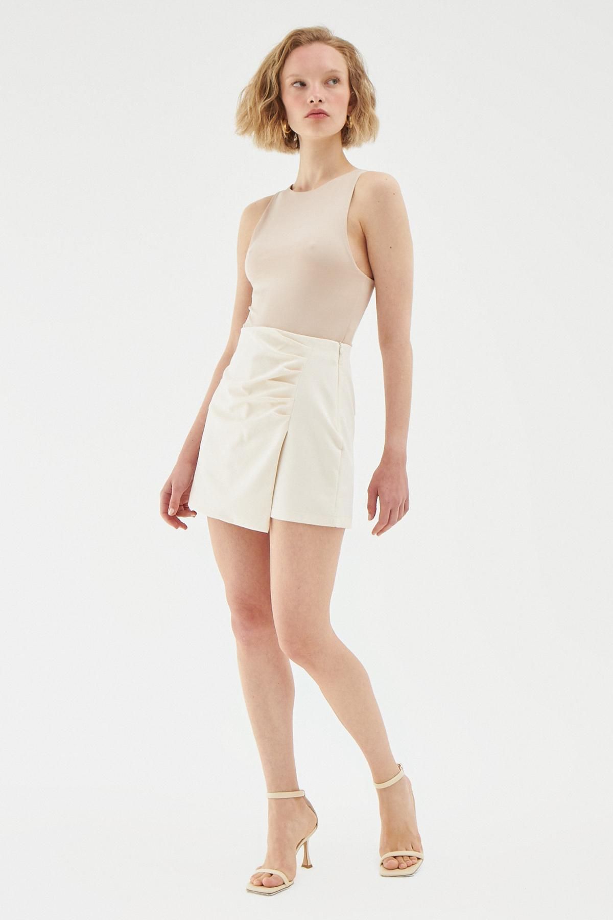 You can create a stylish, casual and sporty look with the front shirred shorts skirt model and you can benefit from its comfort all day. With its wrapover cut mini shorts skirt model design, it offers the advantage of achieving a comfortable elegance from night to day in its combinations. The shorts skirt model takes its place among the most popular items of the wardrobe and the season.