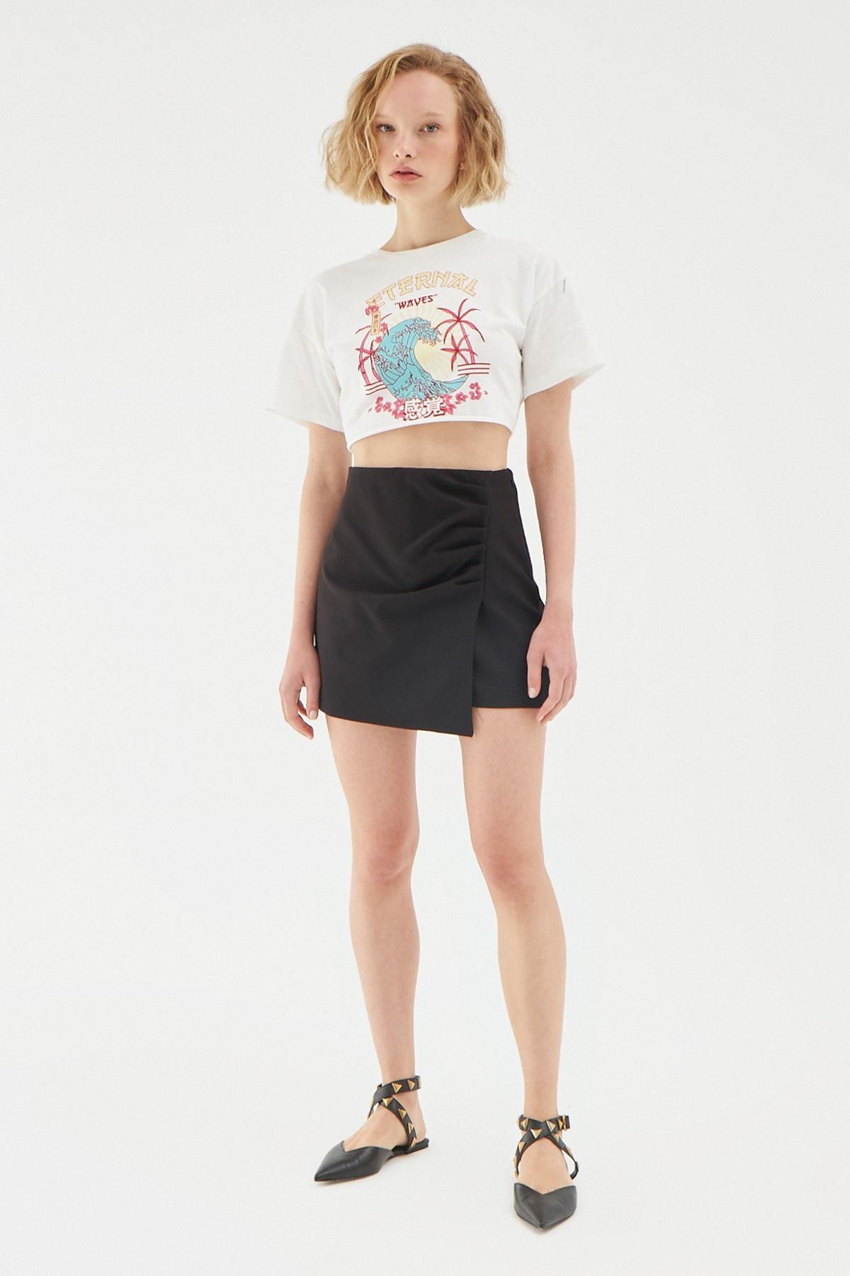 You can create a stylish, casual and sporty look with the front shirred shorts skirt model and you can benefit from its comfort all day. With its wrapover cut mini shorts skirt model design, it offers the advantage of achieving a comfortable elegance from night to day in its combinations. The shorts skirt model takes its place among the most popular items of the wardrobe and the season.