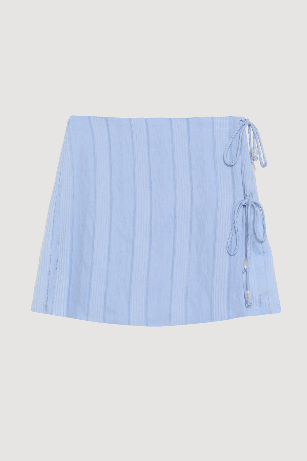 İnce Çizgili Bağlama Detaylı Şort Etek Mavi
