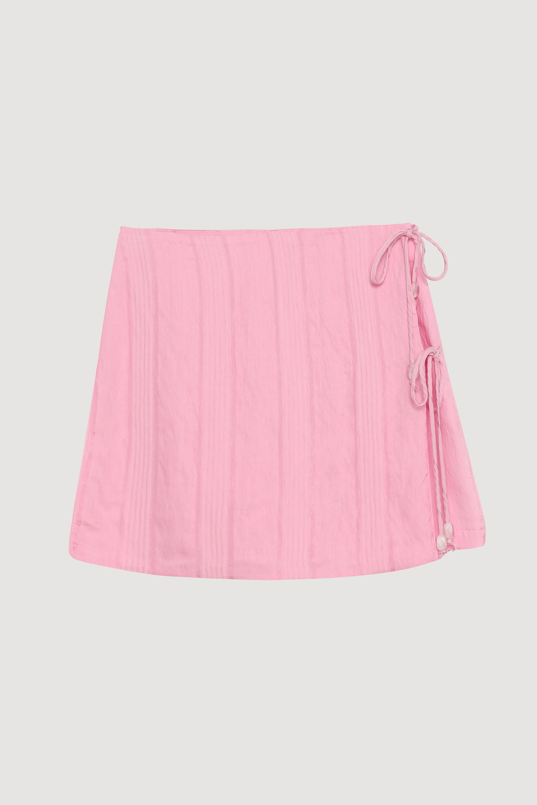 İnce Çizgili Bağlama Detaylı Şort Etek Pembe