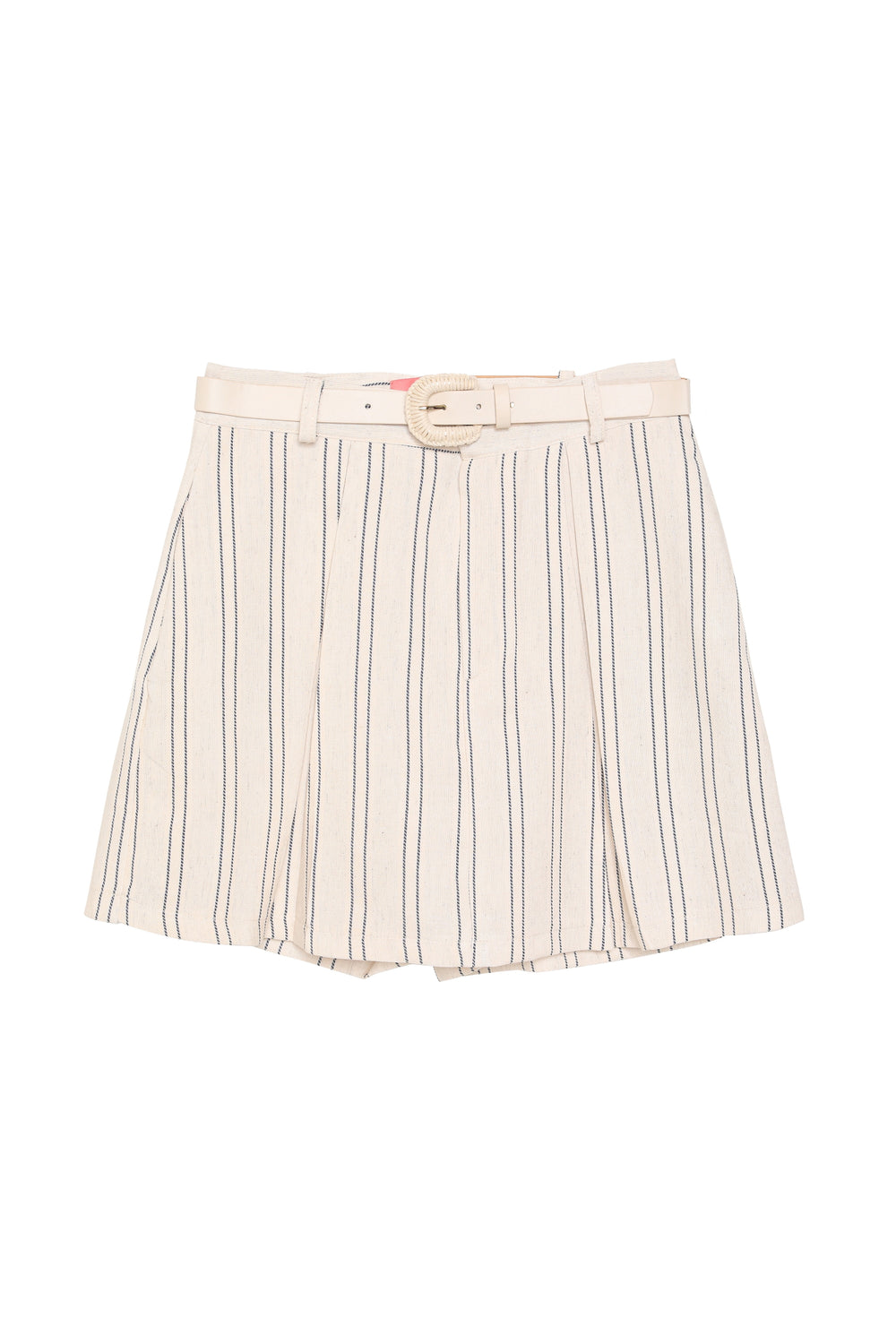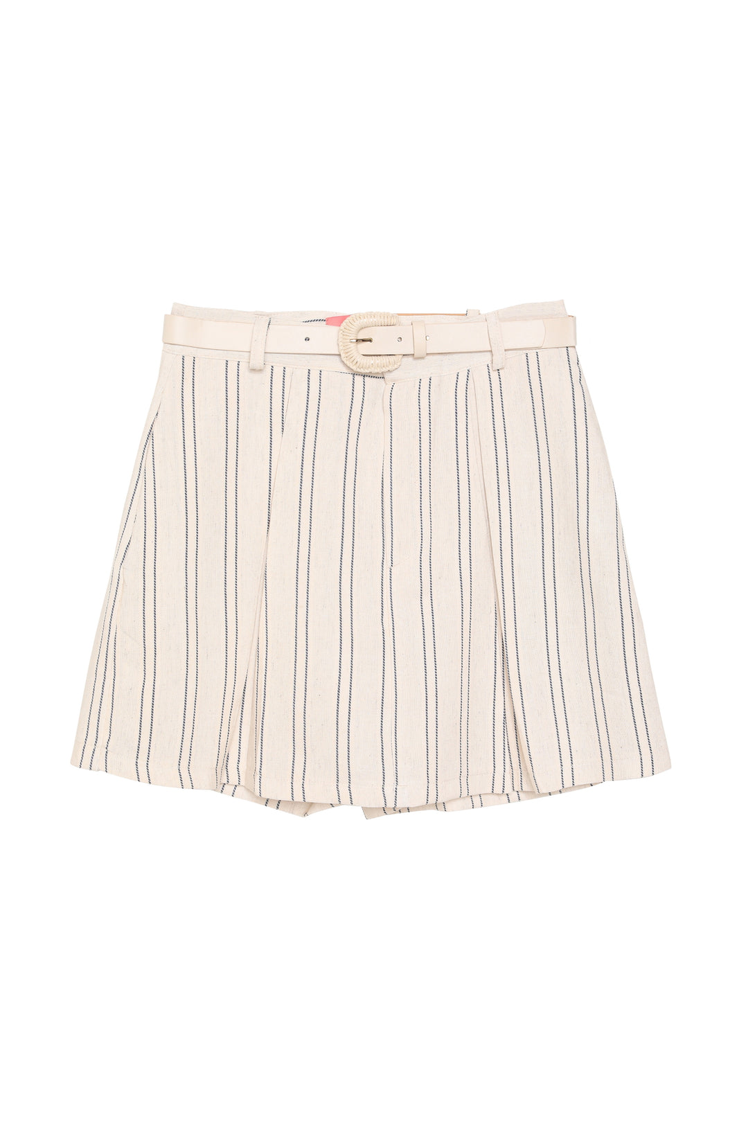 Kemer Detaylı Çizgili Keten Şort Etek Naturel