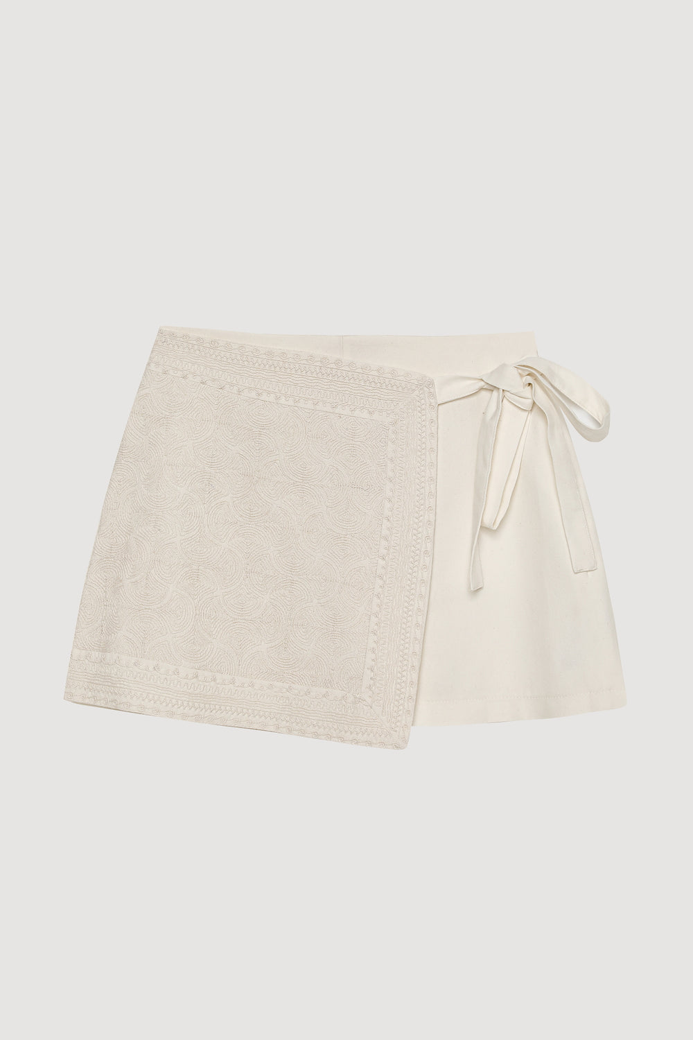 Nakış Detaylı Bağlamalı Mini Şort Etek Ekru