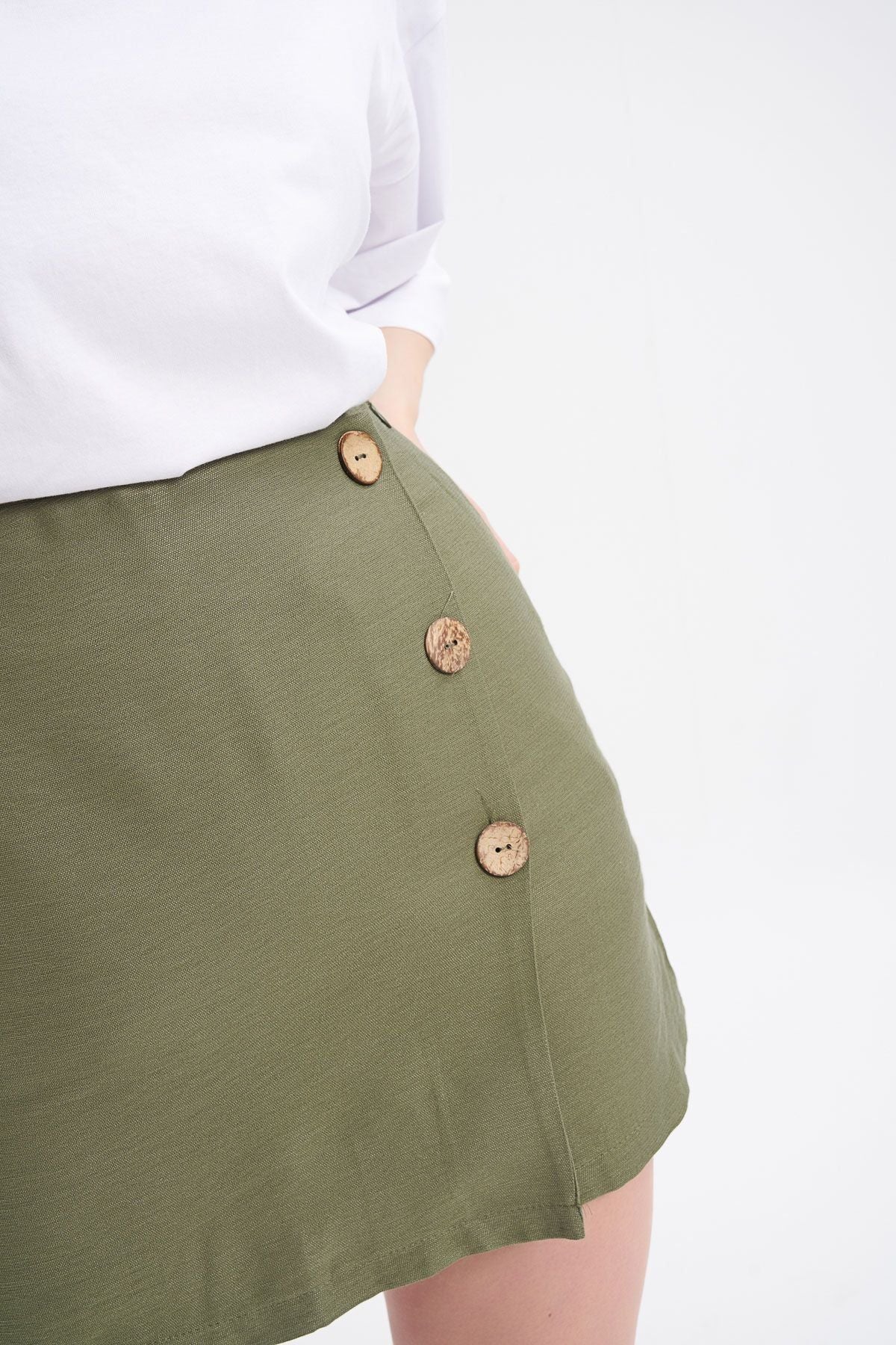 Button Front Skirt Shorts Khaki