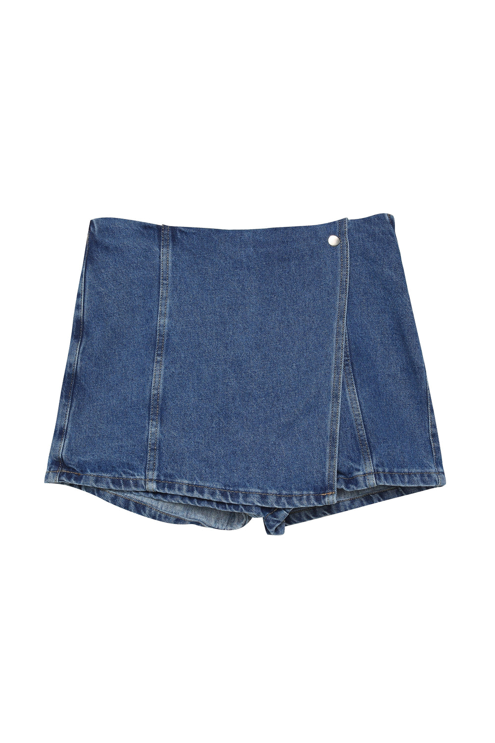 Düğme Detaylı Kot Şort Etek Açık Mavi