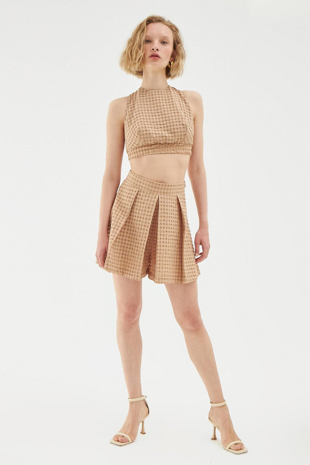 Pleat Detailed Short Skirt Beige