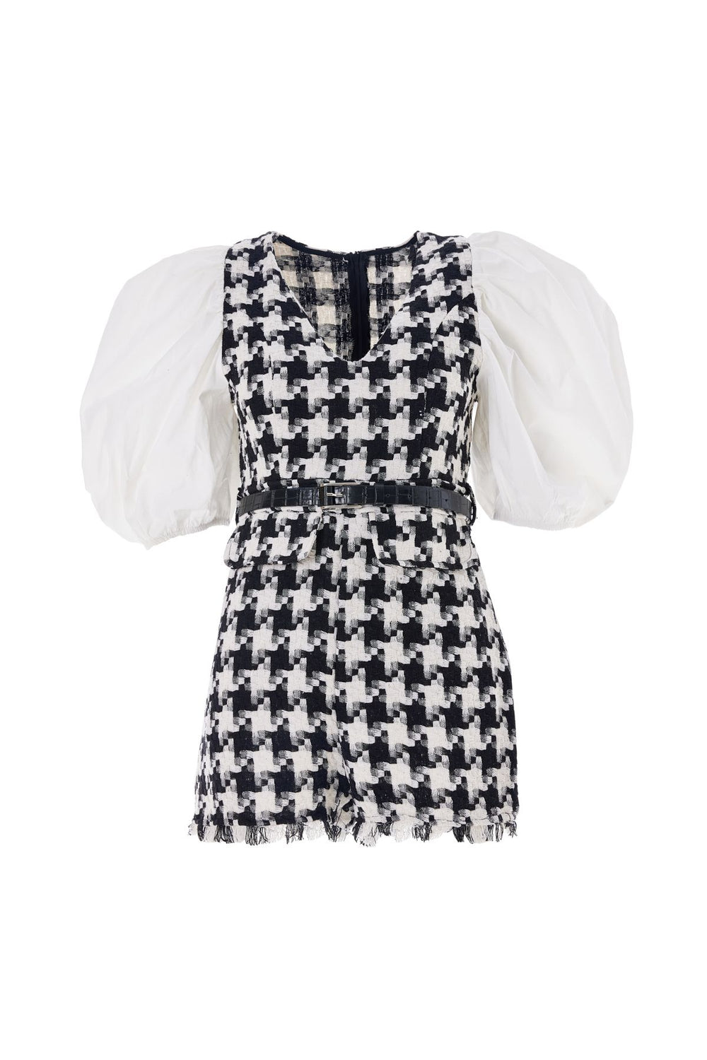 Tweed Balloon Sleeve Shorts Jumpsuit Black