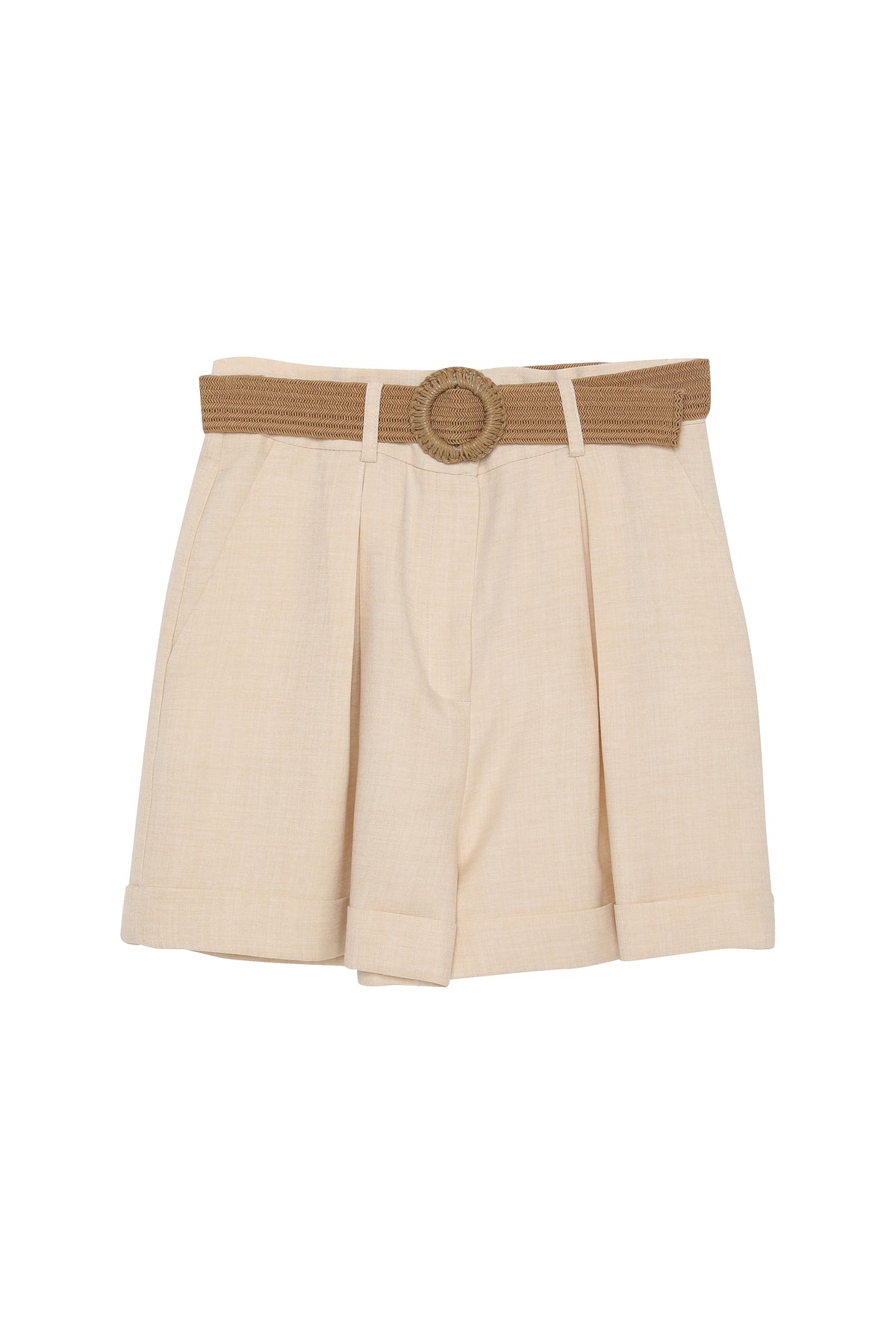 Hasır Kemerli Duble Paça Şort Naturel