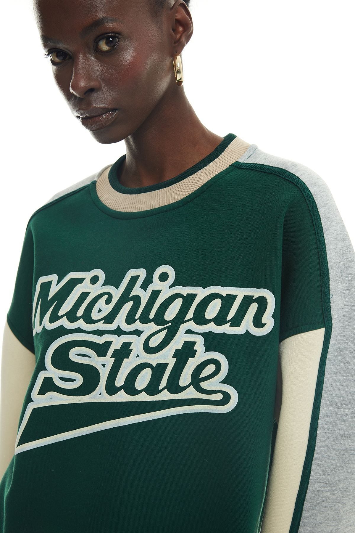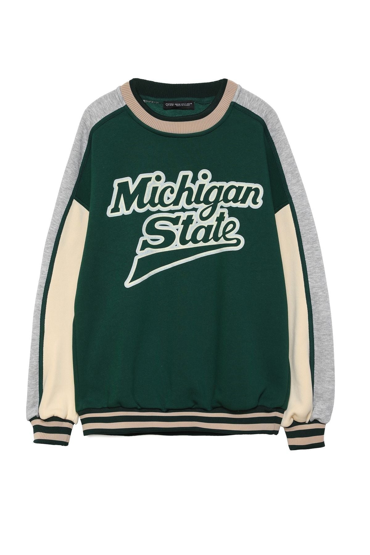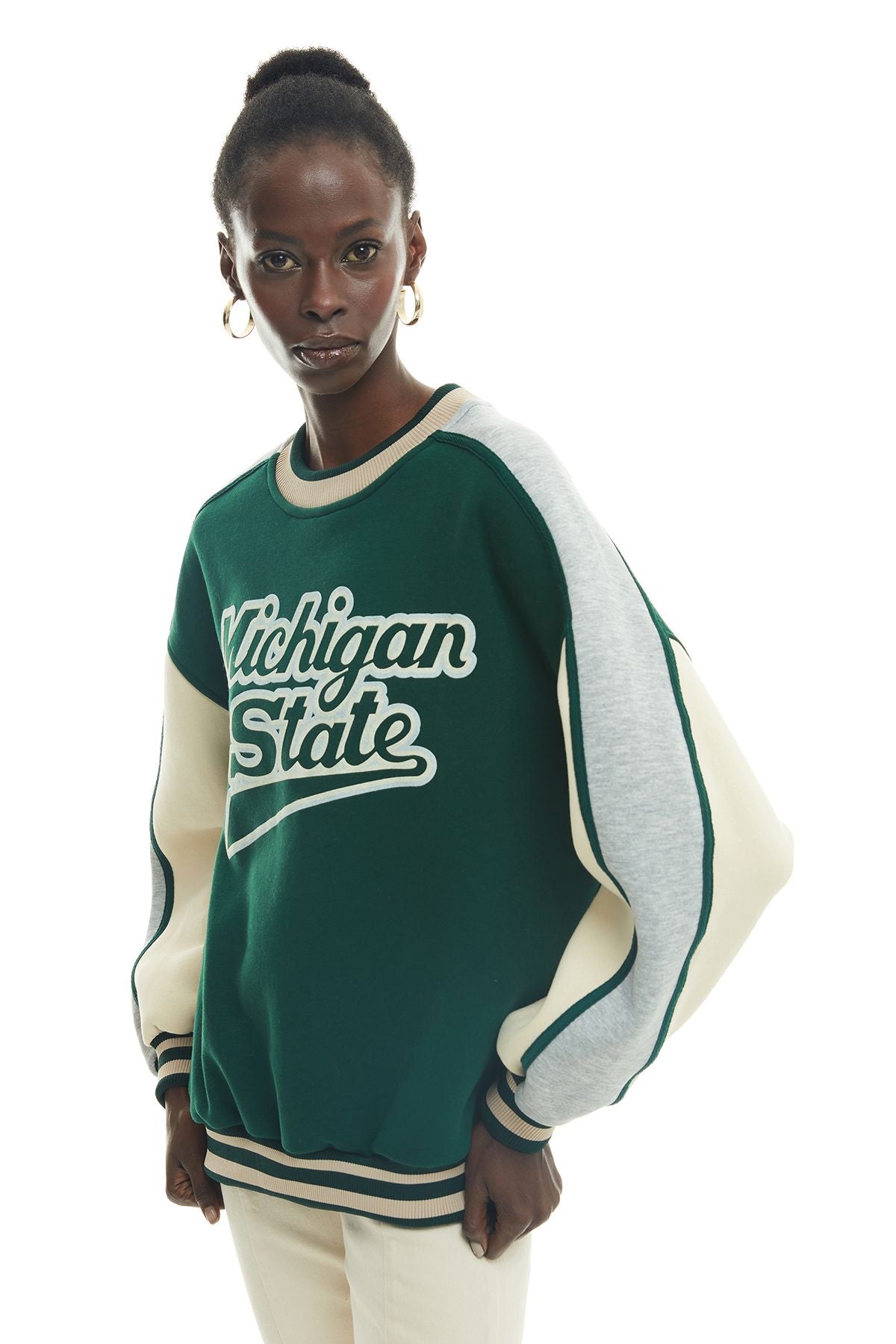Oversized sweatshirt with a round neckline, long sleeves, cotton content, long sleeves, inner raising, embroidery on the front.