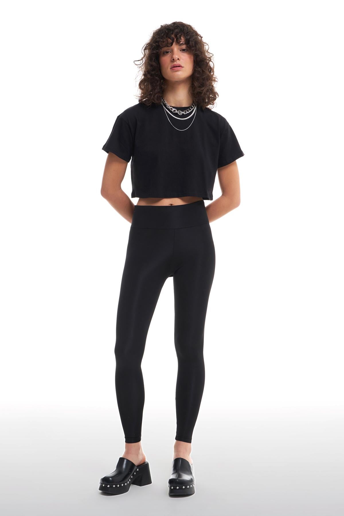 High waist, body-hugging fit, full length, shiny texture, wrap tights.