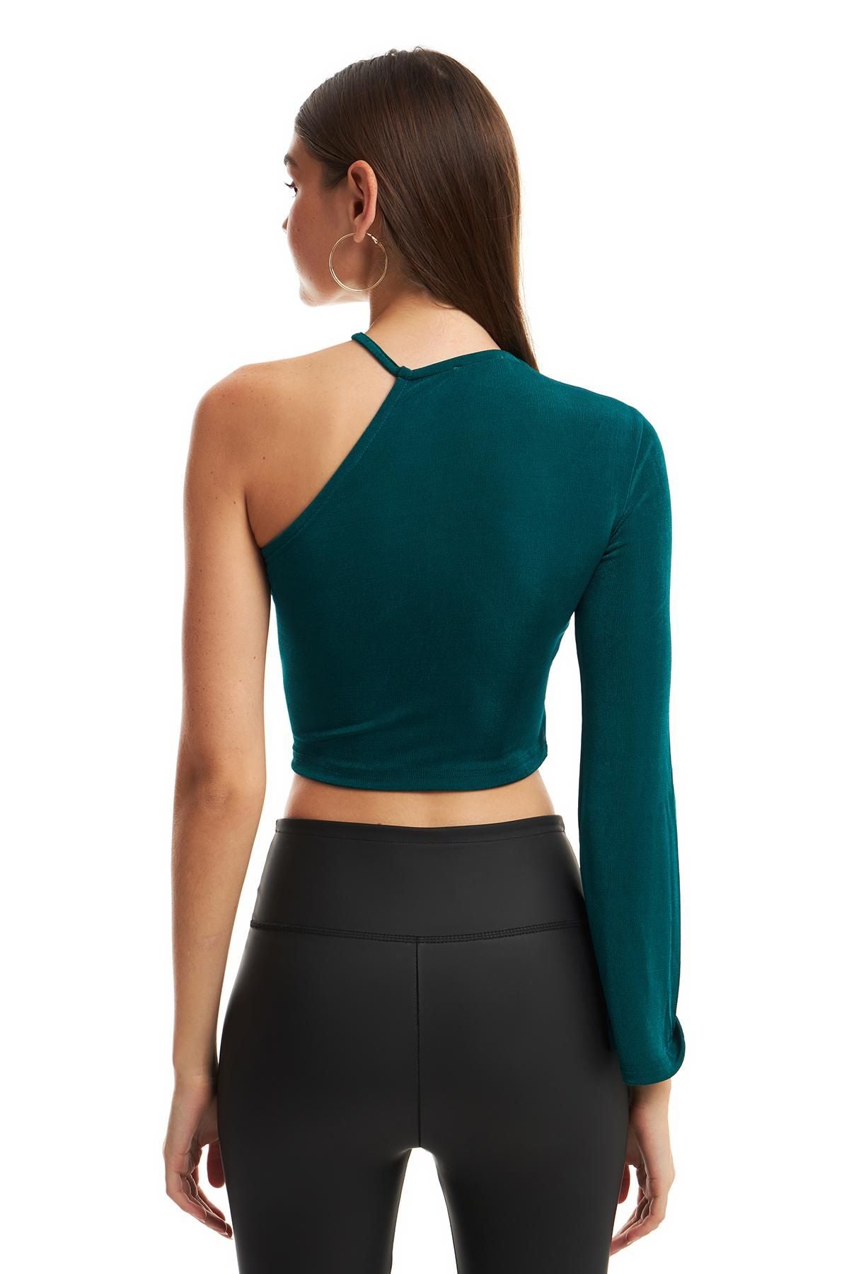 One Shoulder Blouse Dark Green