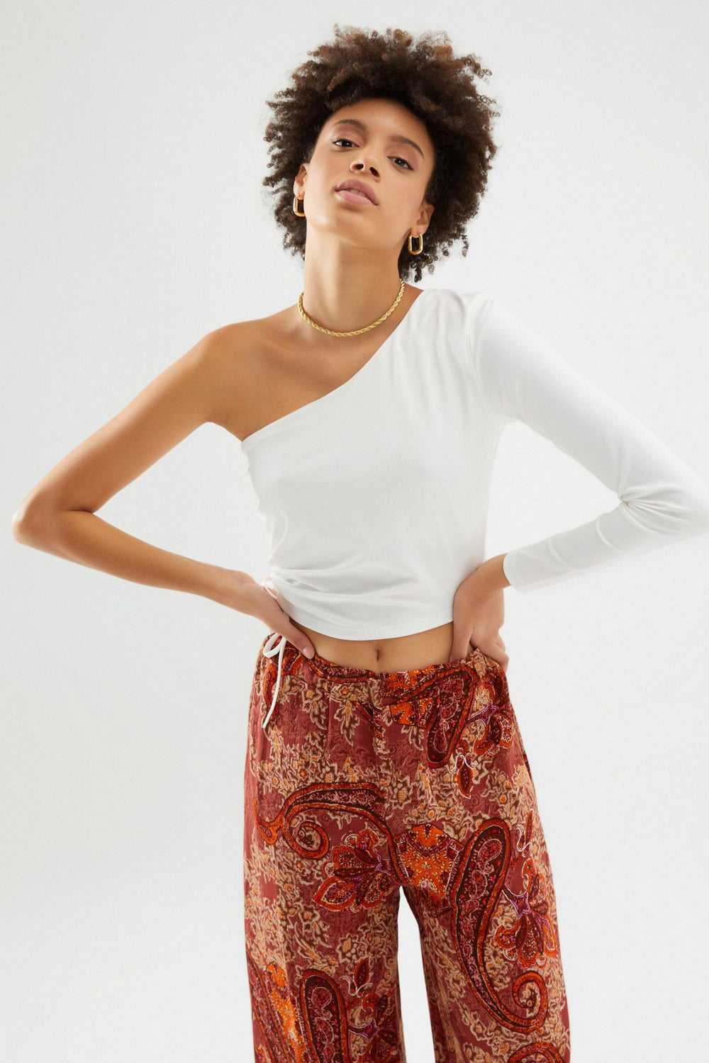 One Shoulder Crop Blouse Ecru