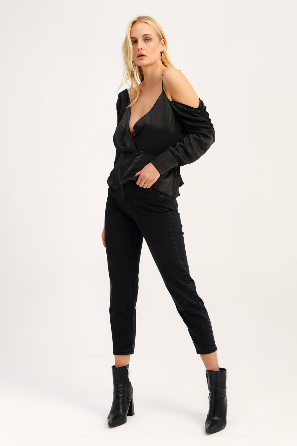 Low Cut One Shoulder Blouse Black