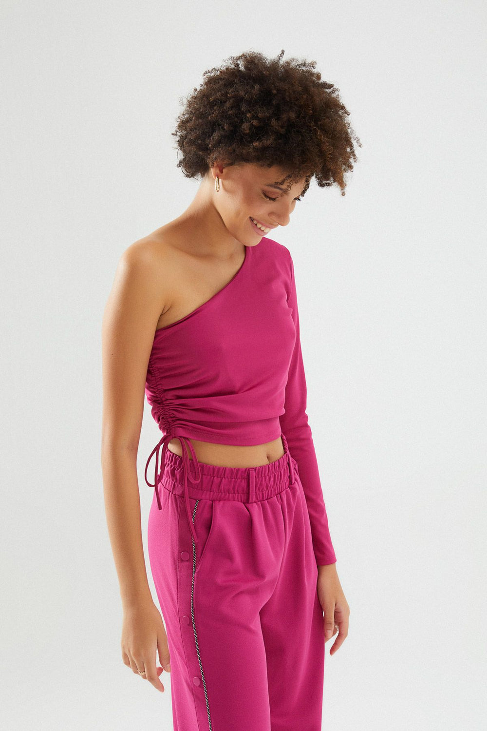 One Shoulder Crop Blouse Candy Pink