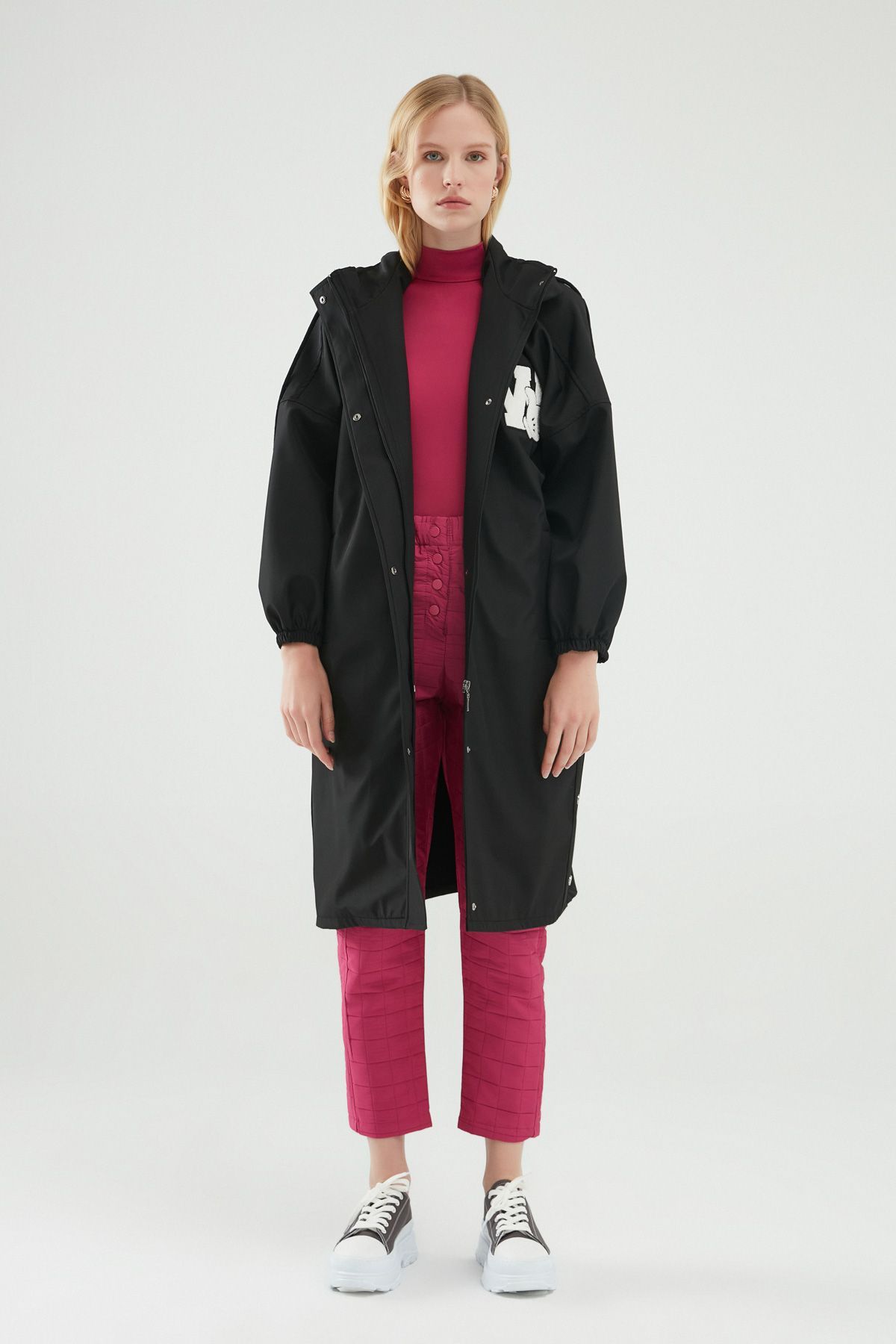Hooded Oversize Trench Coat Black